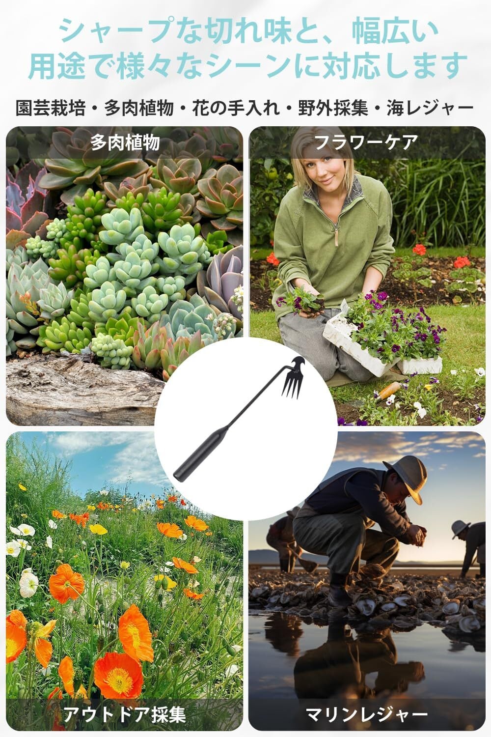【幅広い用途に対応する便利アイテム!】庭の草取りだけでなく、農場や植栽、さらには家庭菜園など、幅広いシーンで活躍します。一つの道具で様々な除草作業をこなすことができ、家庭菜園を育てる方にもぴったりです。