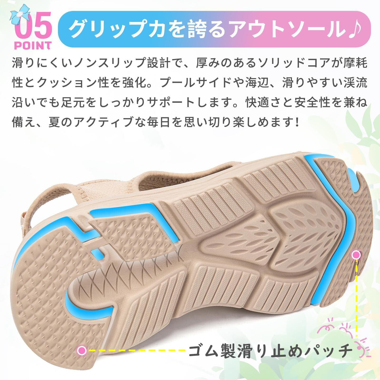 【流行りのスニーカーサンダル】甲部分を覆うデザインでスニーカー感覚。メッシュ素材なので夏は涼しく快適、蒸れにくいので心地良く履けます。甲を覆うので、靴下とも相性がよく、スニーカーのようなウェアリングができる,かわいい便利なサンダルです!