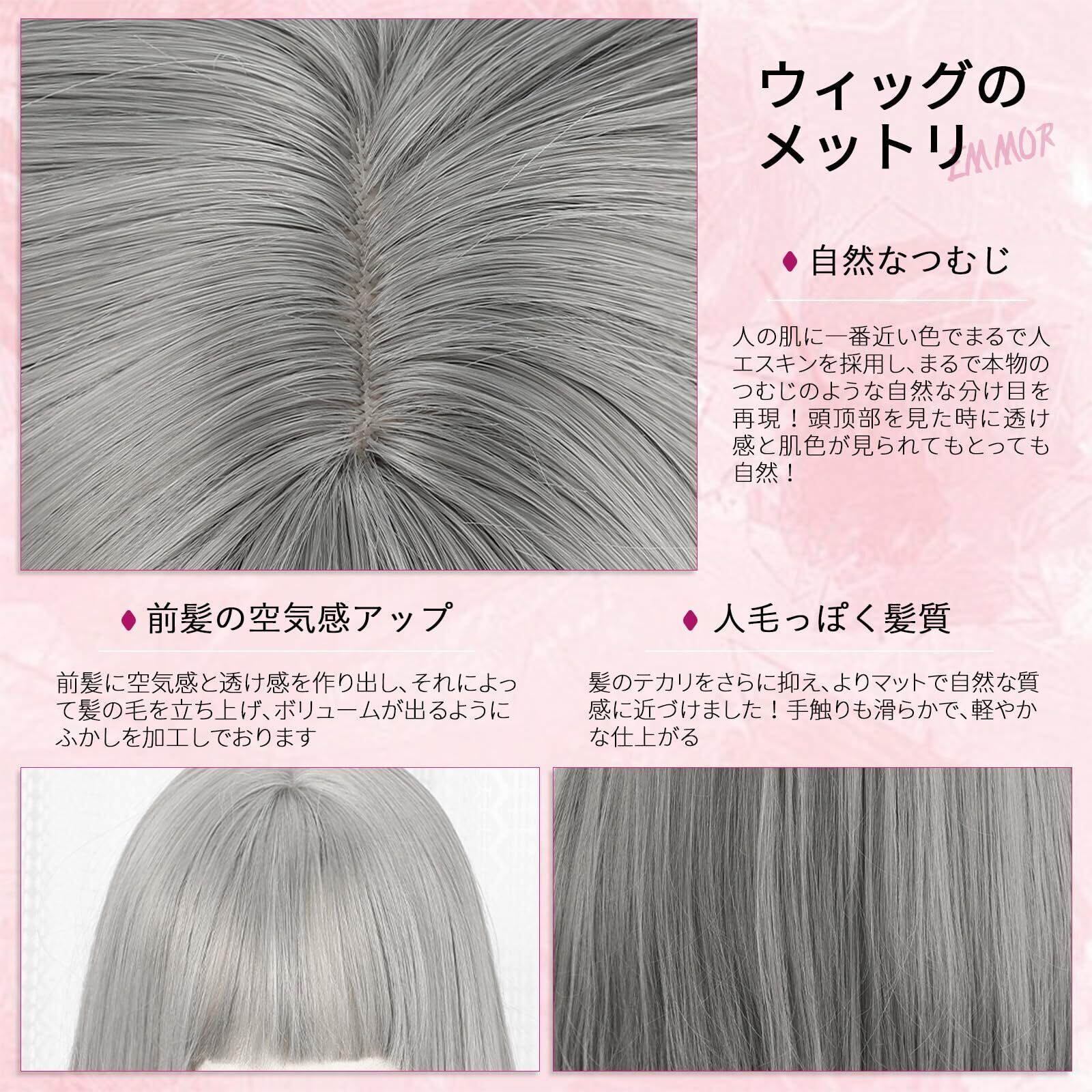 [EMMOR ウィッグ ロング ストレート グレーウイッグ 女装 フルウィッグ レイヤー ロリータ かつら 人気 小顔 自然 耐熱 原宿系 コスプレ wig (シルバーグレー)]