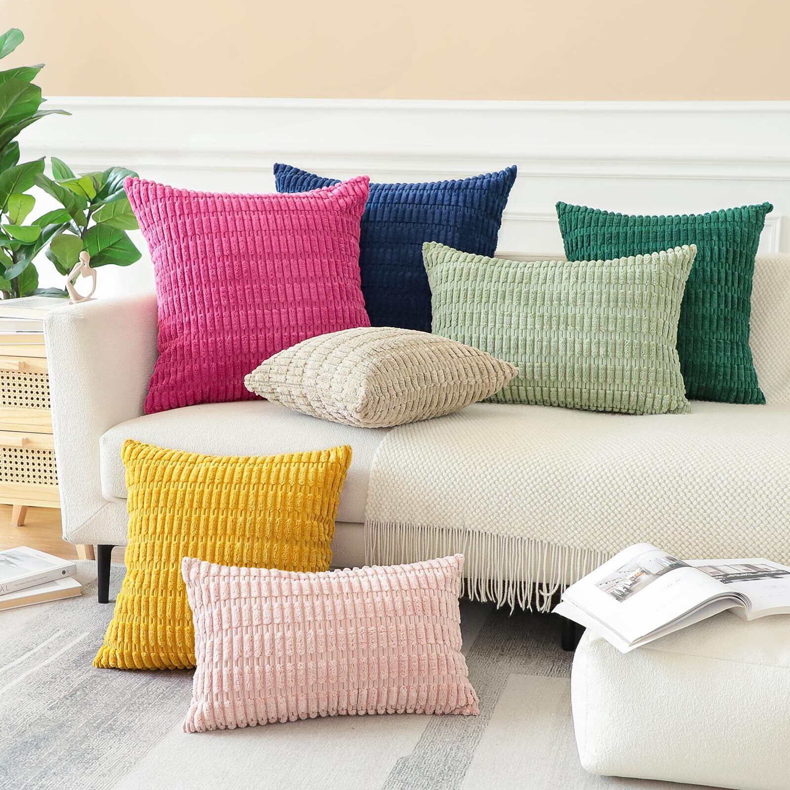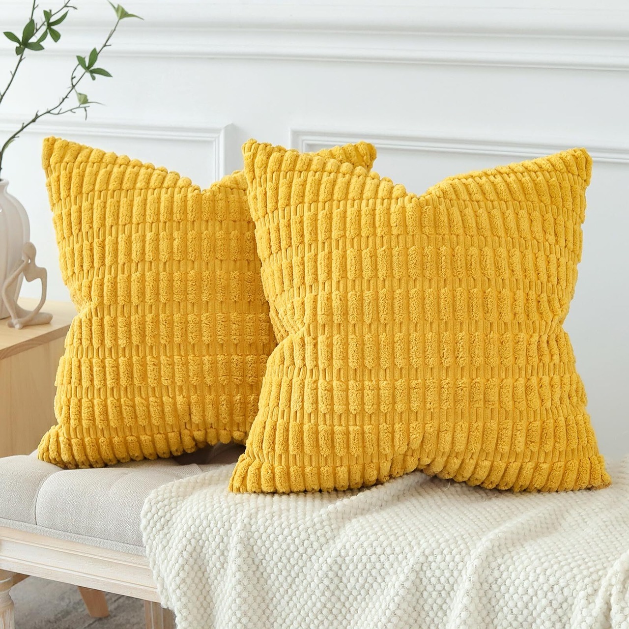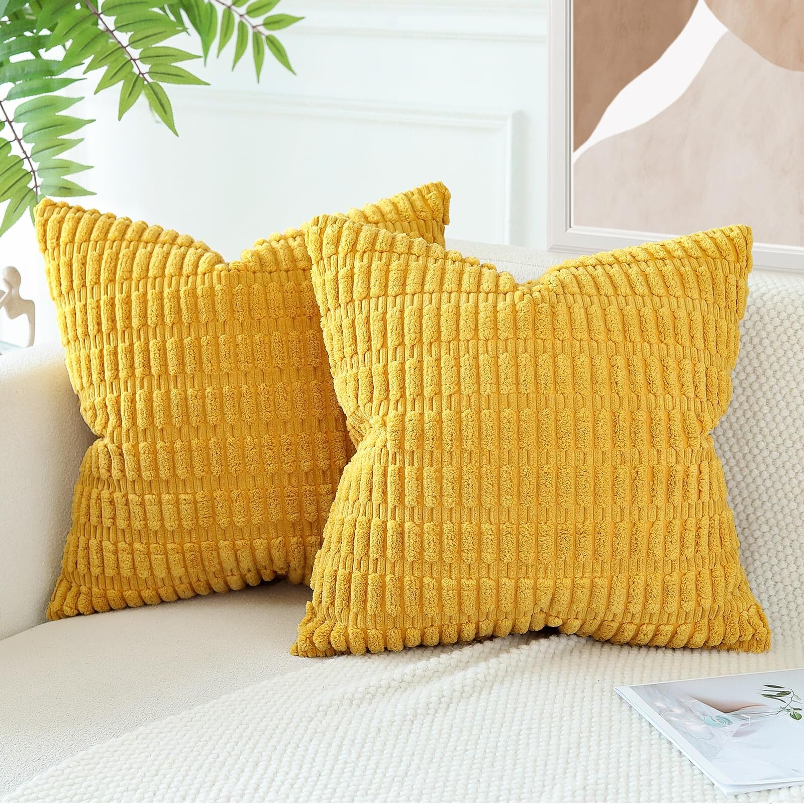 Otostar クッションカバー 45x45cm 北欧 2枚セット コールテン 麦の穂 おしゃれ 可愛い モダン ファスナー インテリア ソファー用クッションカバー(45x45, イエロー) | Bloomia