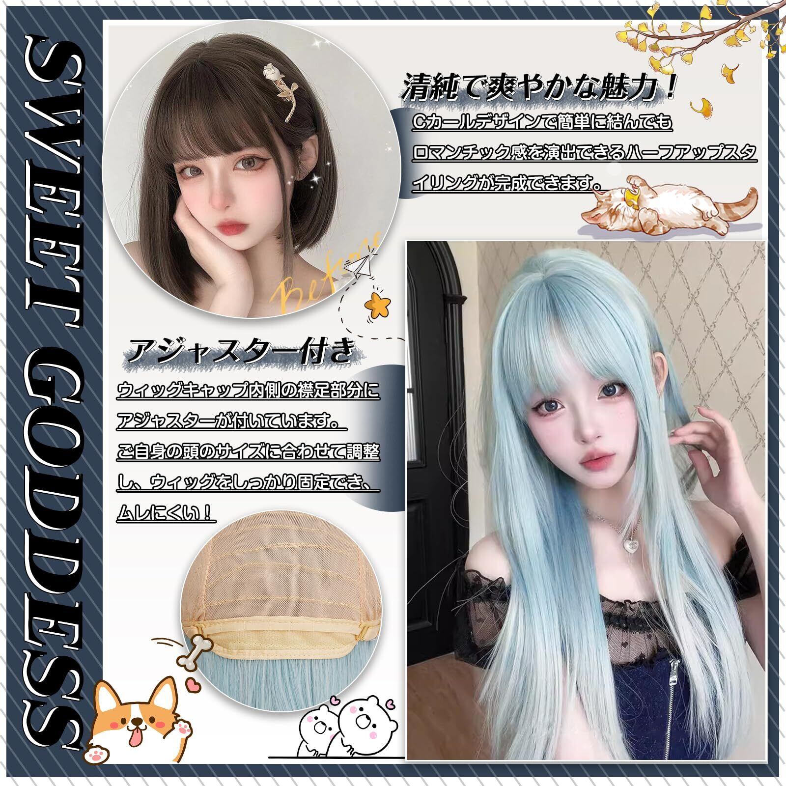 Hawkko ウィッグ ロング ストレート フルウィッグ ウィッグ 女装 かつら 黒髪 レディーズ ロングウィッグ カツラ ロリータ コスプレ 自然 ぱっつん前髪 原宿 ハロウィーン 可愛い 小顔 人気 耐熱 wig 原宿系 ロングヘアー ファッション ネット/櫛付き(アクアマリン・シルバーグレー) | Bloomia