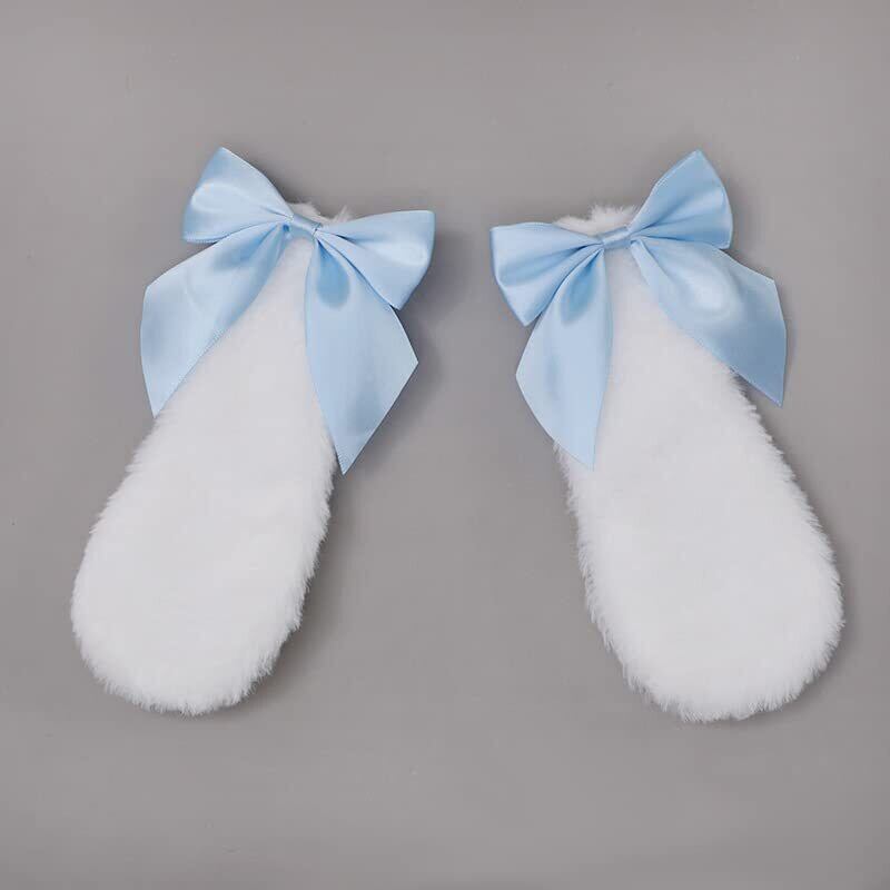 もこもこで手触りがとてもいい感じ、リボンと合わせてとても可愛い雰囲気を演出します。たれみみのうさ耳はメイド服やアリスに合わせても可愛い。