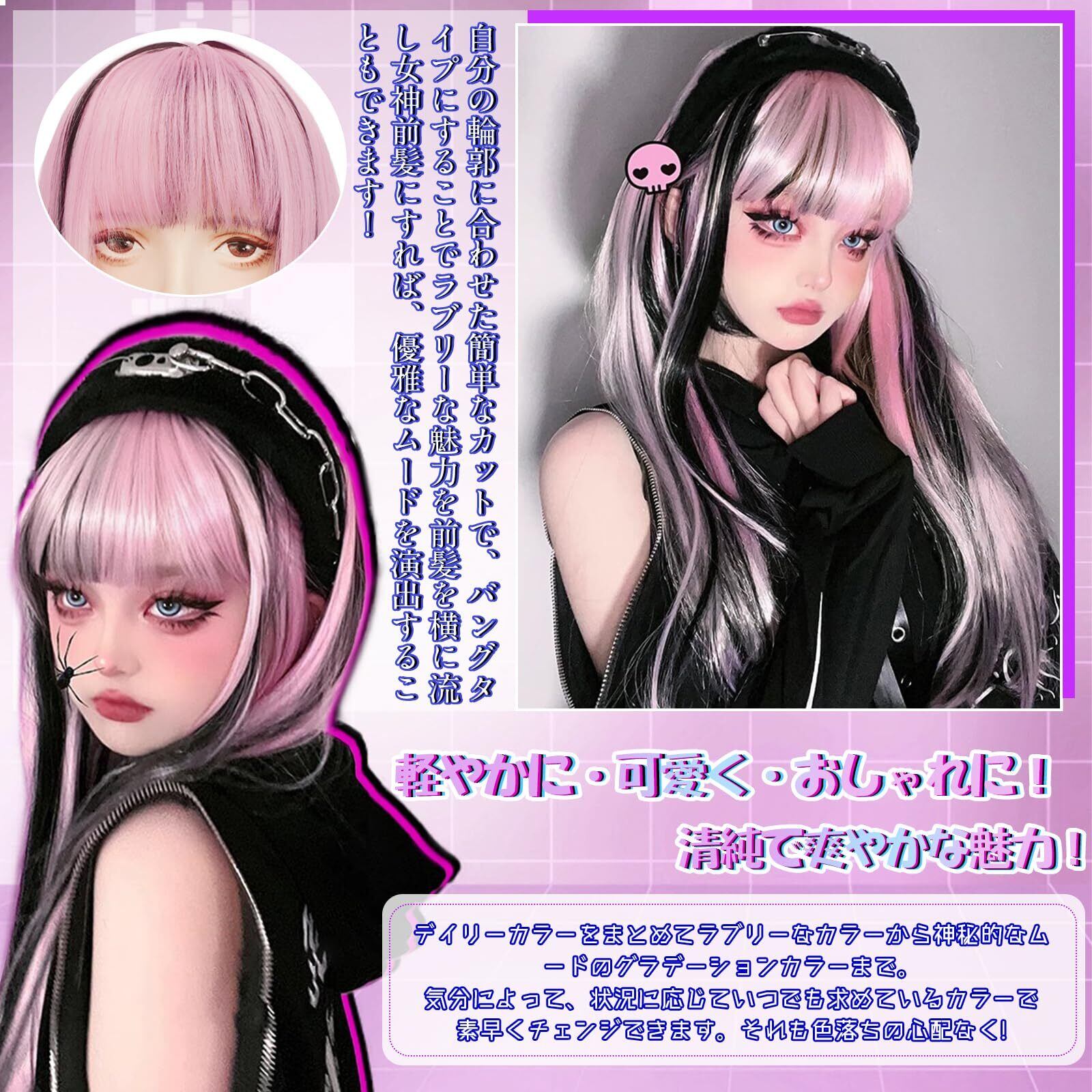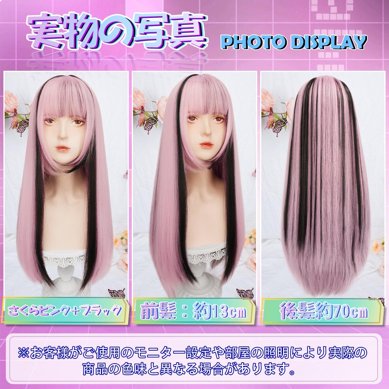 Hawkko ウィッグ ロング ストレート 姫カット フルウィッグ インナーカラー 姫髪 かつら レディーズ 女装 ウィッグ カツラ グラデーション ぱっつん前髪 ロングウィッグ 自然 ぱっつん ロングヘアー 原宿 ロリータ ハロウィーン cosplay 小顔 人気 耐熱 wig 原宿系 ファッション 女装 コスプレ ネット/櫛付き(さくらピンク+ブラック) | Bloomia