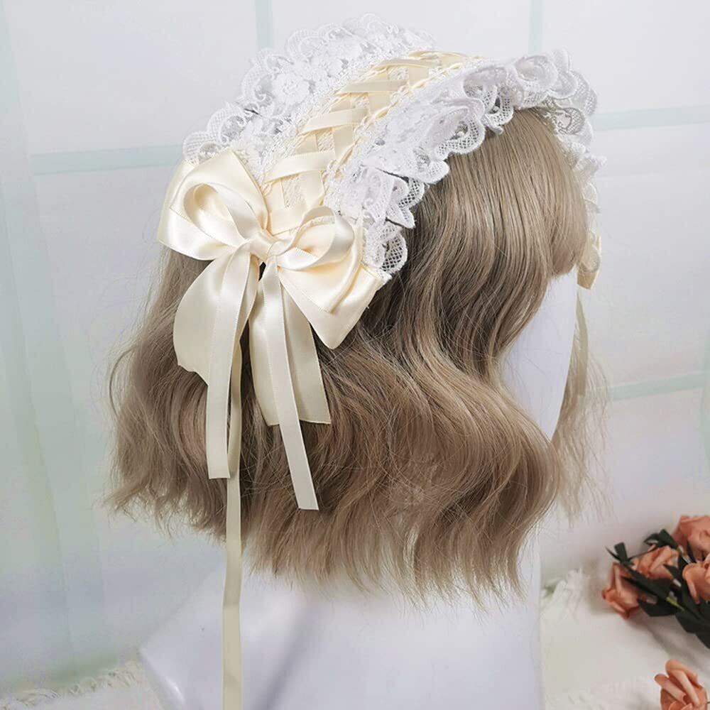 [通用] チャーム ロリータ 髪飾り リボン付き ヘアアクセサリー レースフリル カチューシャコスプレ系 萌え系 お人形 茶話会 パーティー メイドヘア lolita おしゃれ ゴスロリかわいい ヘッドドレス (Beige) | Bloomia