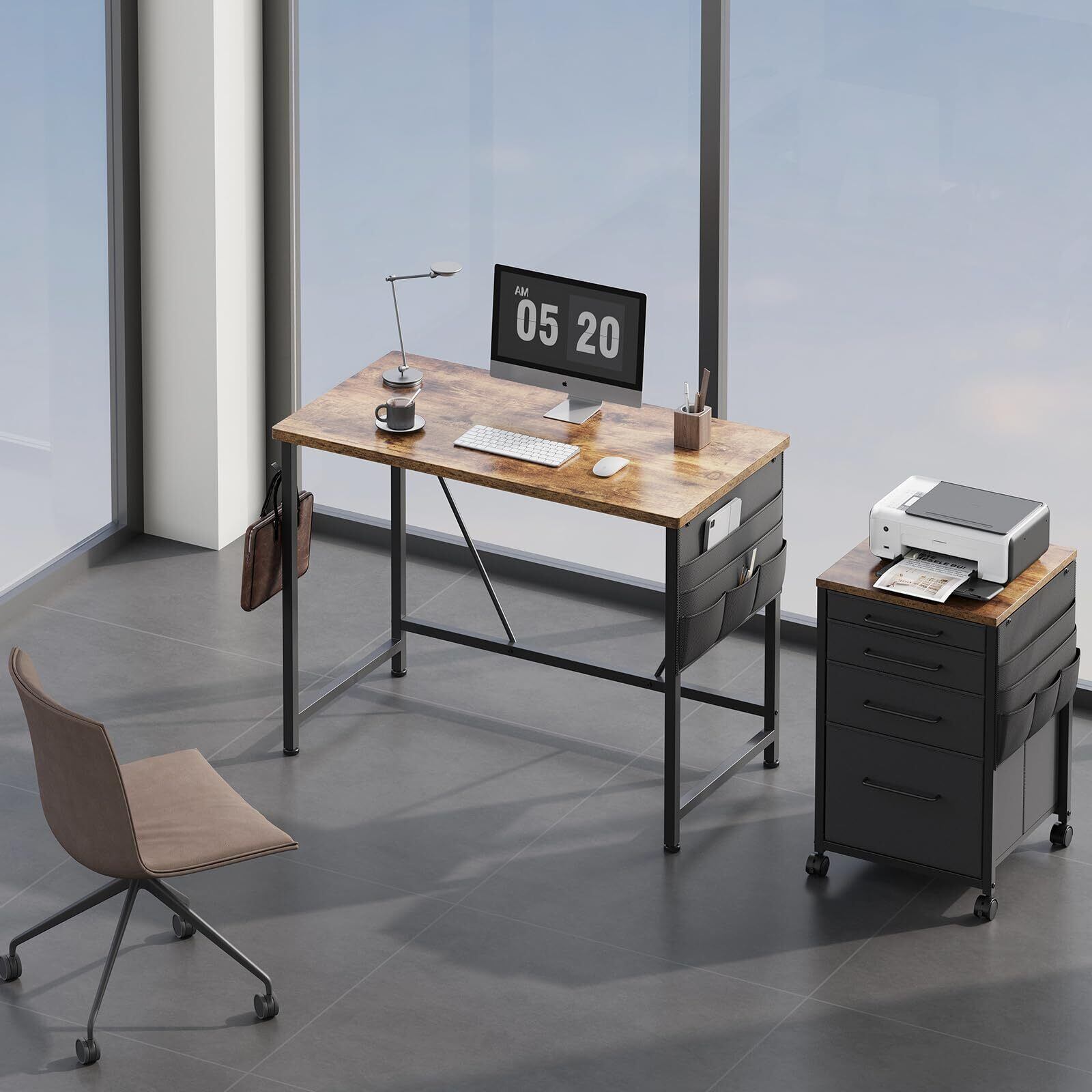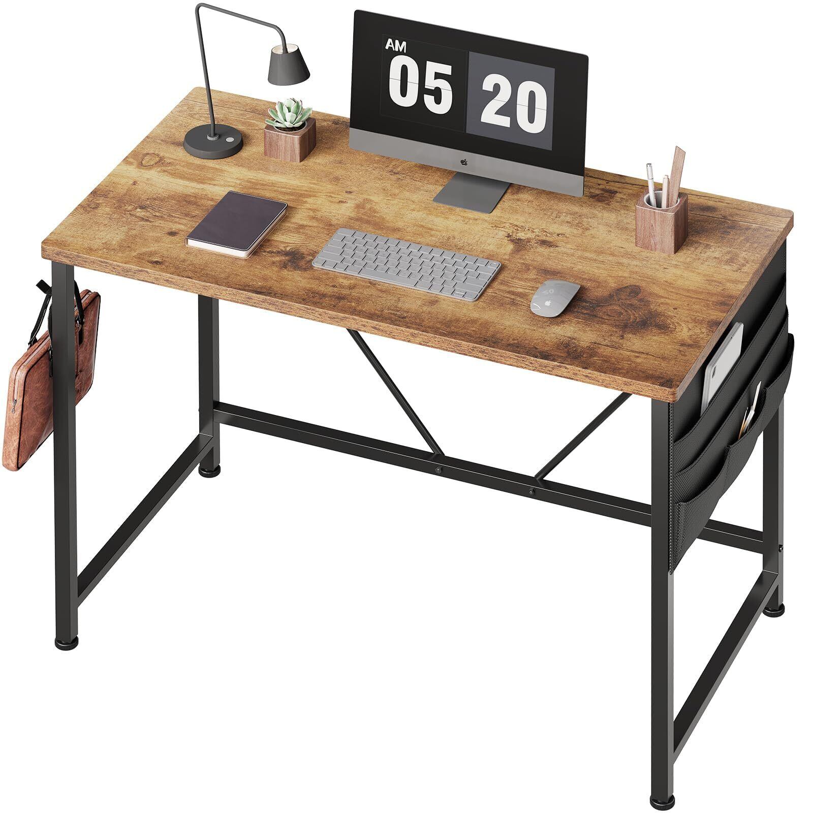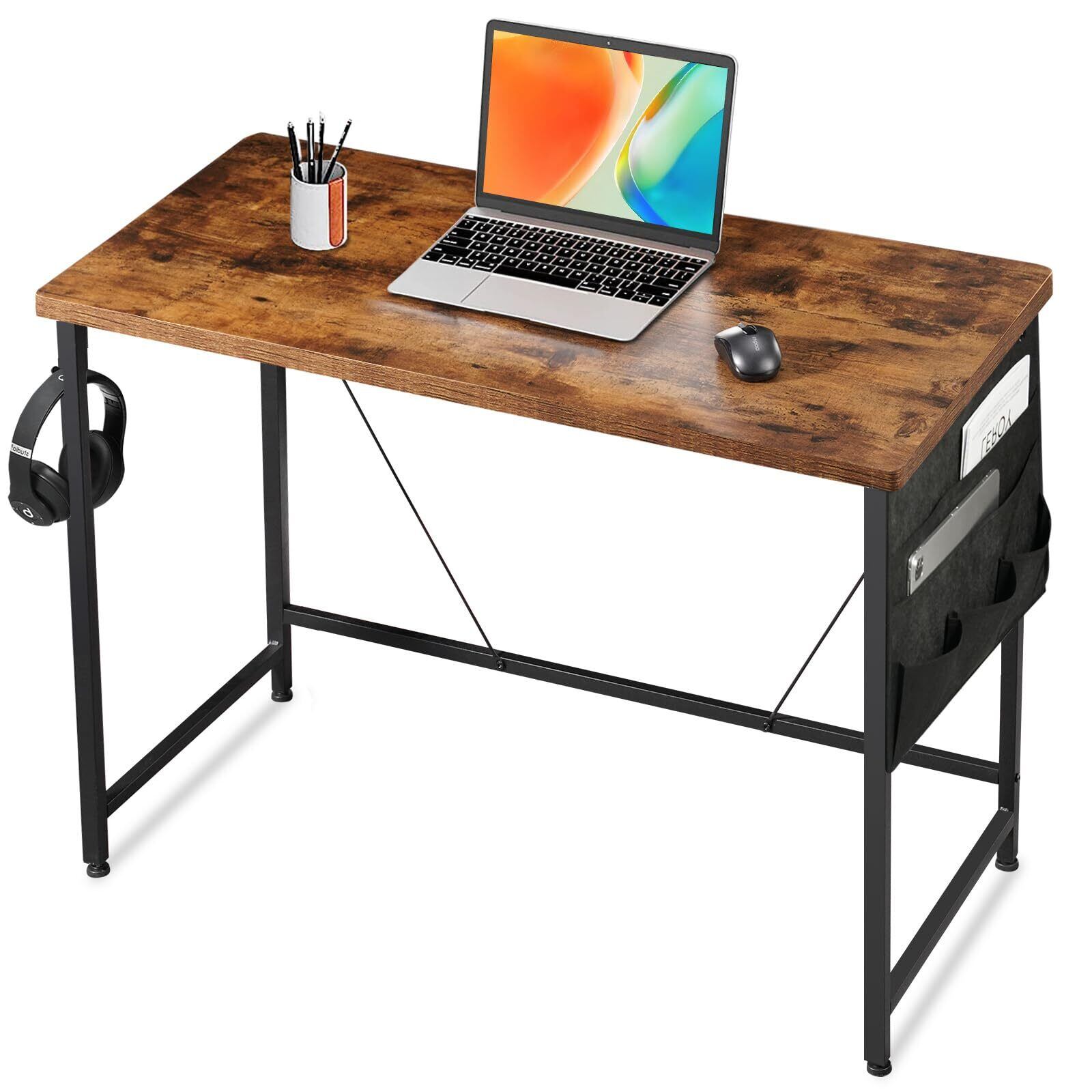 YeTom パソコンデスク pc 幅100*奥行48cm つくえ シンプル 収納袋付き勉強机 フック付き学習机 オフィス 組立簡単 在宅 テレワーク ビンテージ