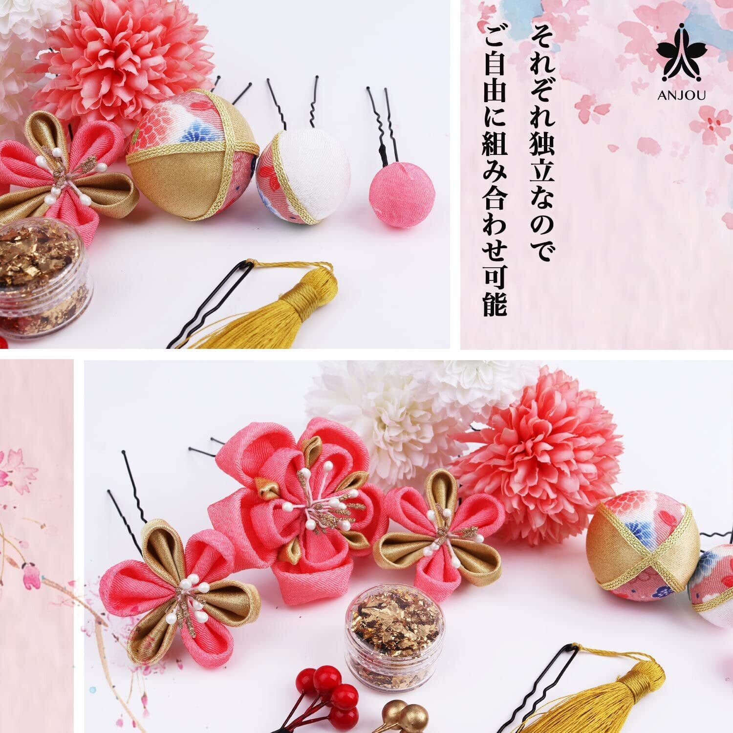 ANJOYJP 髪飾り 成人式髪飾り 和装ヘアアクセサリー 手作り髪飾り 13点セット 金色 花 コサージュ 房飾り Uピン式 つまみ細工 振袖向け 卒業式 結婚式 着物 白無垢 色打掛 花嫁 七五三 金箔付き(ピンク) | Bloomia