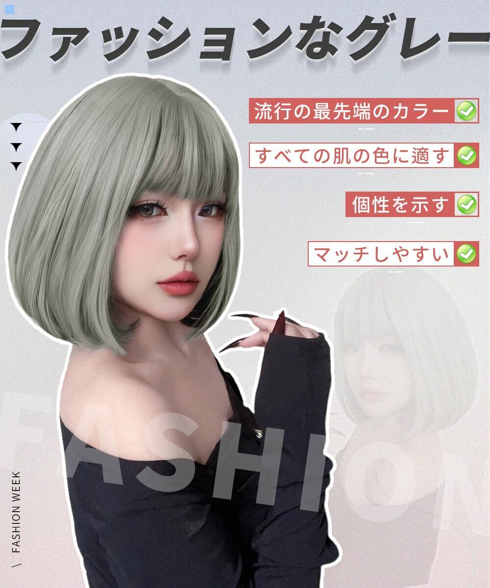 [Vigorousウィッグ ボブ グレー ショット フルウィッグ かつら レディース ストレート 小顔効果 オシャレ 女装 原宿系 ロリータ 自然 可愛い 耐熱 普段使い]