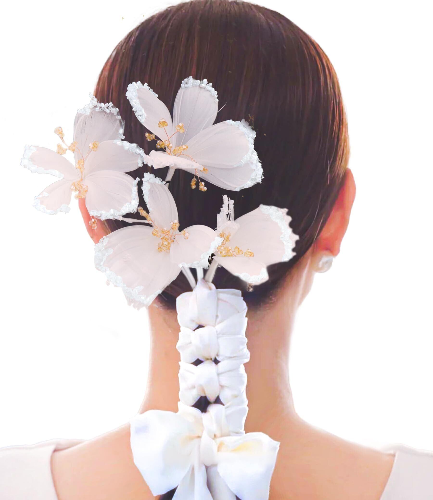 【メイン素材】純白絹布と同じ素材で作られた小花の髪飾りセットです。