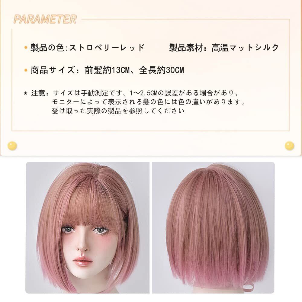 ウィッグ ボブ ショート ぱっつん前髪 耐熱 かつら 小顔 ナチュラル 原宿 可愛い フルウィッグ レディー 普段使い ウィッグ 医療用 自然 かつら ネット付き (ローズピンク)