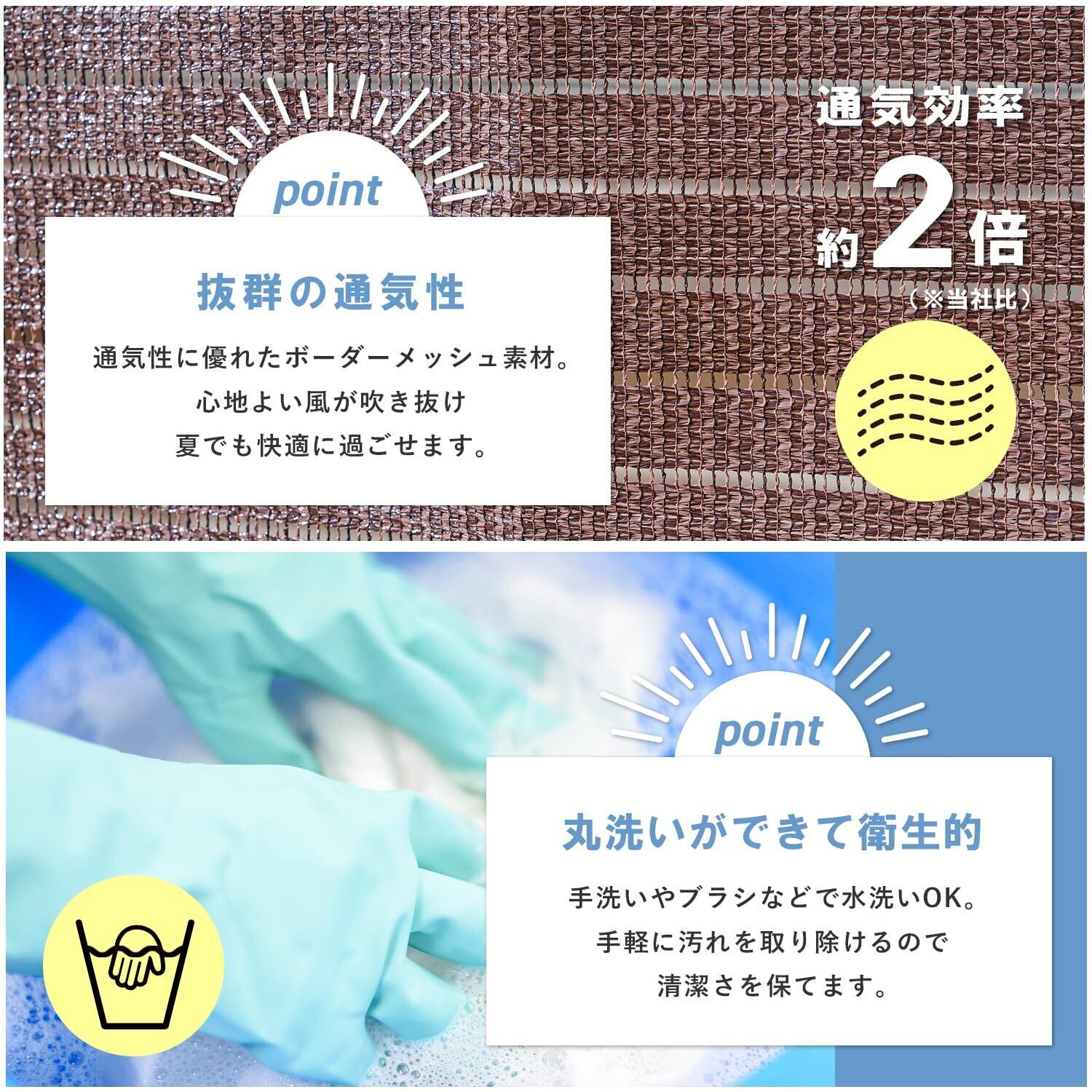●ボーダーメッシュで通気性が抜群です。心地よい風とやわらかな光を取り込むのでリラックスした時間を過ごせます。