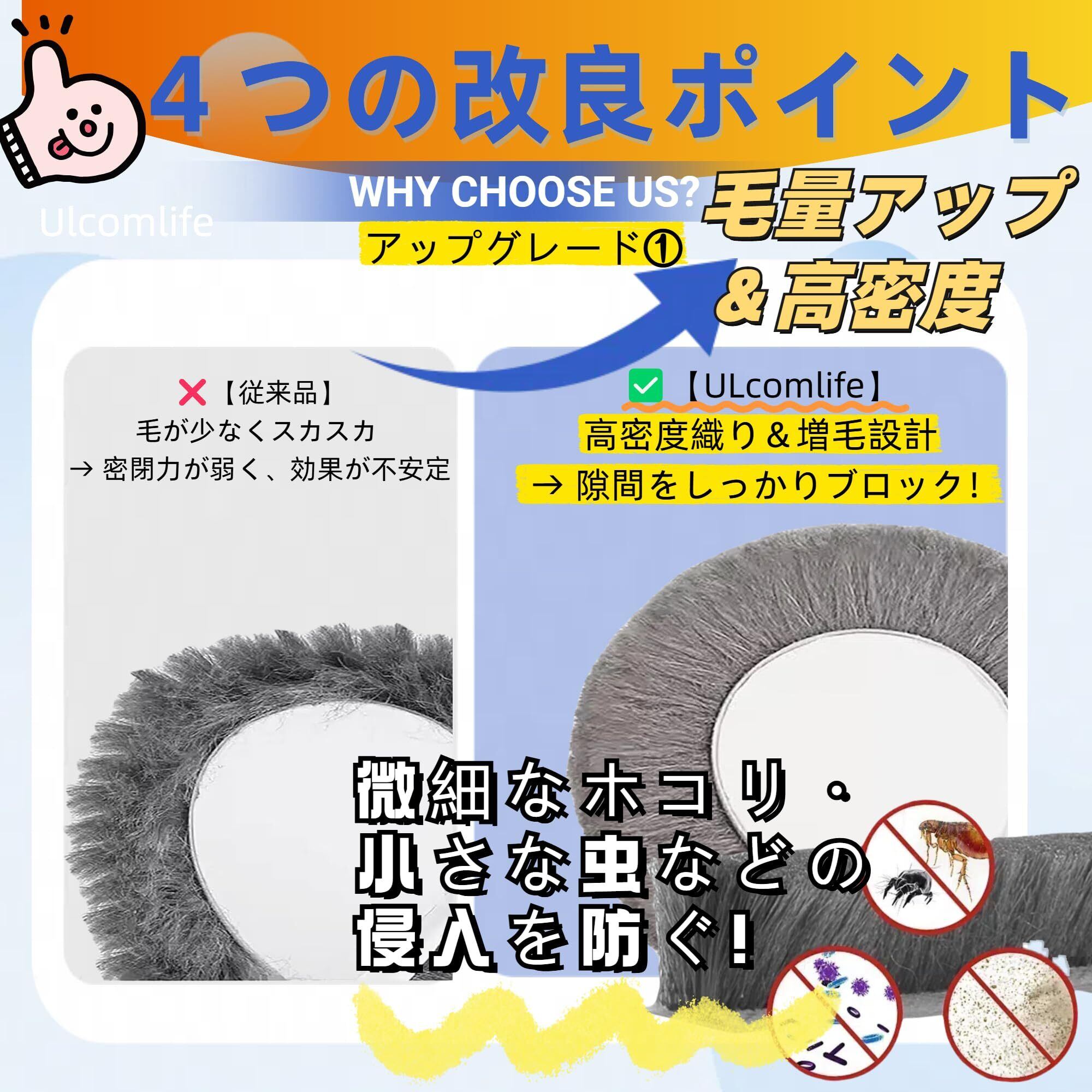【選べる2サイズ&ULcomlifeエイエンホショウ】:5mm×10mと9mm×10mの2サイズをご用意し、さまざまなすき間や窓・ドアにぴったりフィット。モヘア隙間テープ サッシ用や虫除け隙間テープとして幅広い用途に対応します。さらにULcomlifeでは、製品に自信があるからこそエイエンホショウをお付けしています。ご購入後もずっとサポートいたしますので、アンシンしてお使いください。