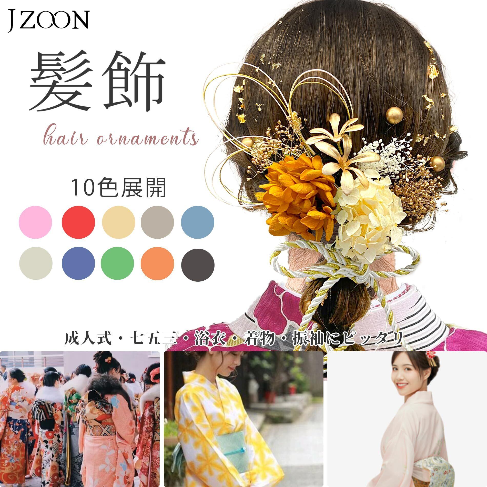 [JZOON] 成人式 髪飾り【9色展開】 七五三 造花 ドライフラワー 水引き 小花モチーフ 和装 金箔 ゴールド ヘッドドレス ヘアアクセサリー 入学式 振袖 卒業式 着物 袴 浴衣 ブライダル ウエディング 発表会 LQ1050