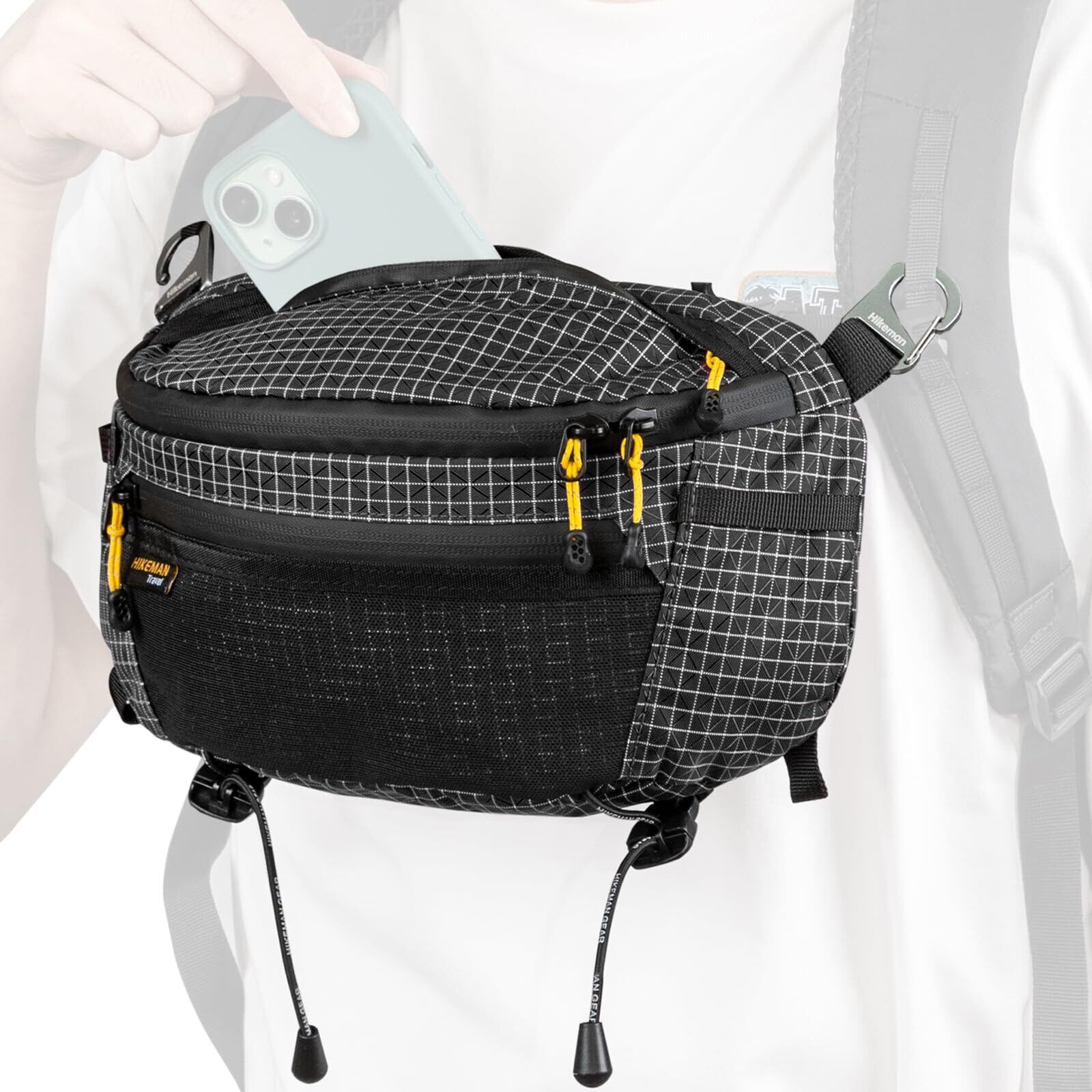 [UDODE] ウエストバッグ 登山 ポーチ 軽量 ウエストポーチ サコッシュ 腰袋 防水 大容量 登山用 アウトドア バイク 旅行 釣り (ブラック)
