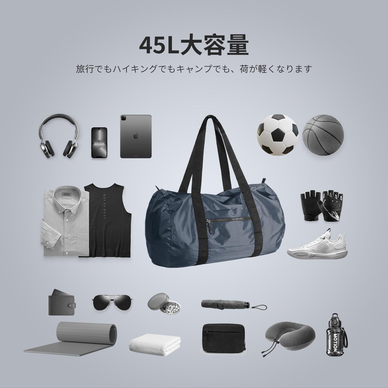 pack all ボストンバッグ トラベルバッグ 折りたたみ リュック防水 スポーツバッグ 旅行バッグ 持ち運びに便利 軽量 旅行 スポーツ キャンプ メンズ レディース 45L(ネイビー)