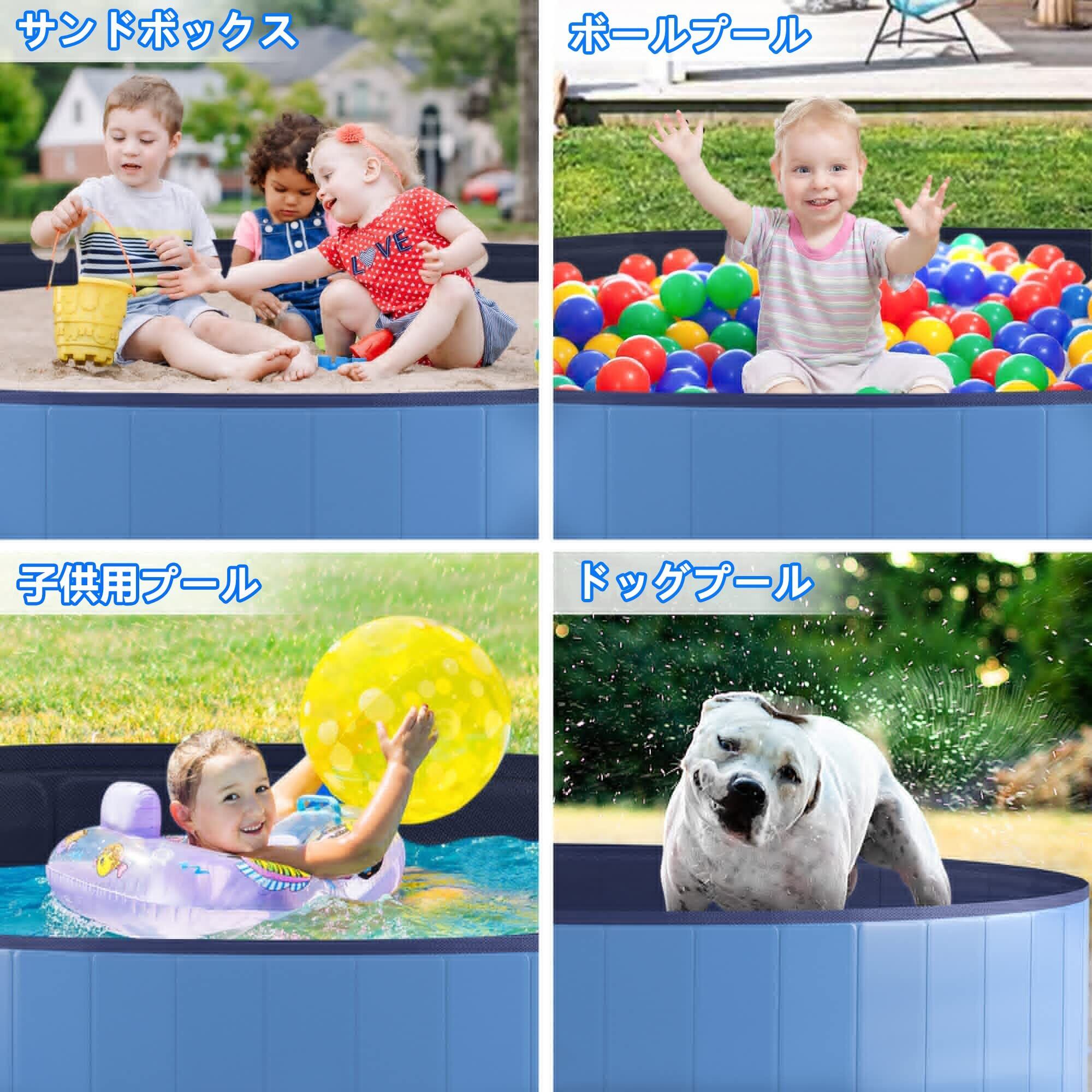【広範な用途】屋外プール、バスタブ、おもちゃの箱、砂の箱、1つ4役で1年中使用できます。お子様の水遊び、ペットバス、大きな物を洗う、おもちゃ入れ、砂入れなどの多くの用途があります。折りたたんで、簡単に持ち運べるので、屋内、お庭、ビーチ、屋外などいつでもどこでも簡単に使用できます。