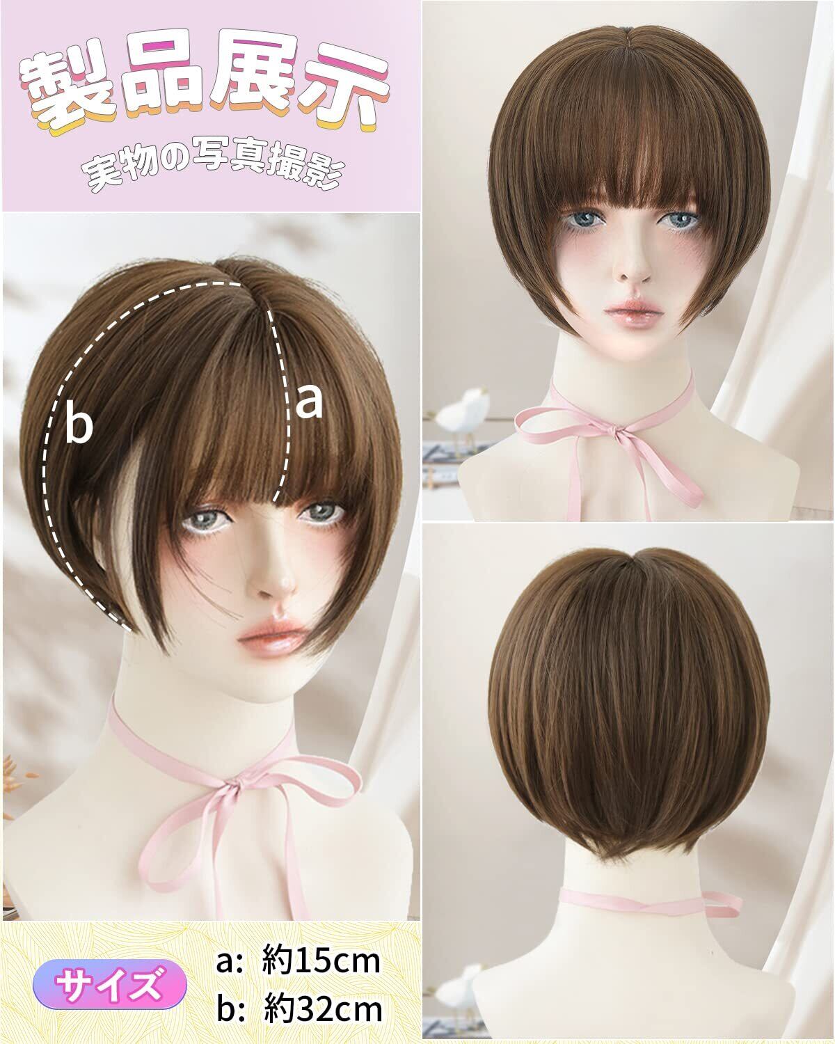 ✿「デイリーウィッグ」:「ショート」:約32cmのボブで、爽やかで日常的、学校や職場の普段のお出かけにぴったりです。 「轻量」:軽量で質感の高い素材を採用し、軽量化を実現しました。 「快適」:通気性や伸縮性があるキャップので、違和感を感じさせないまま、しっかりと装着することができます。 「頭囲調節可」:フック式アジャスターにより、頭囲を適切なサイズに調整機能を搭載しています~