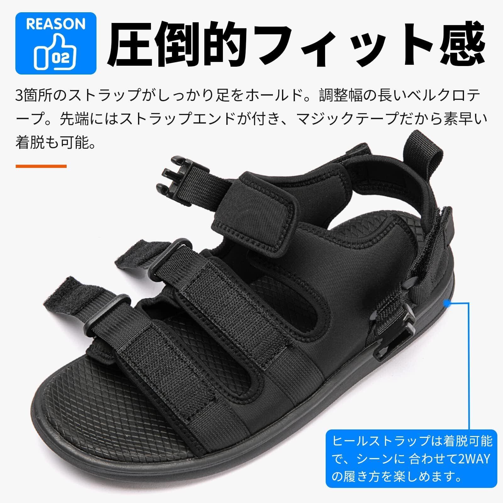 【様々なアウトドアシーンで大活躍!】このサンダルは、水陸両用としてビーチでの水遊びや、山登り、キャンプなど多様なシーンに対応しています。しっかりとしたストラップで足を支え、安定した歩行を実現します。あなたの冒険心を満たすためのベストパートナーです。