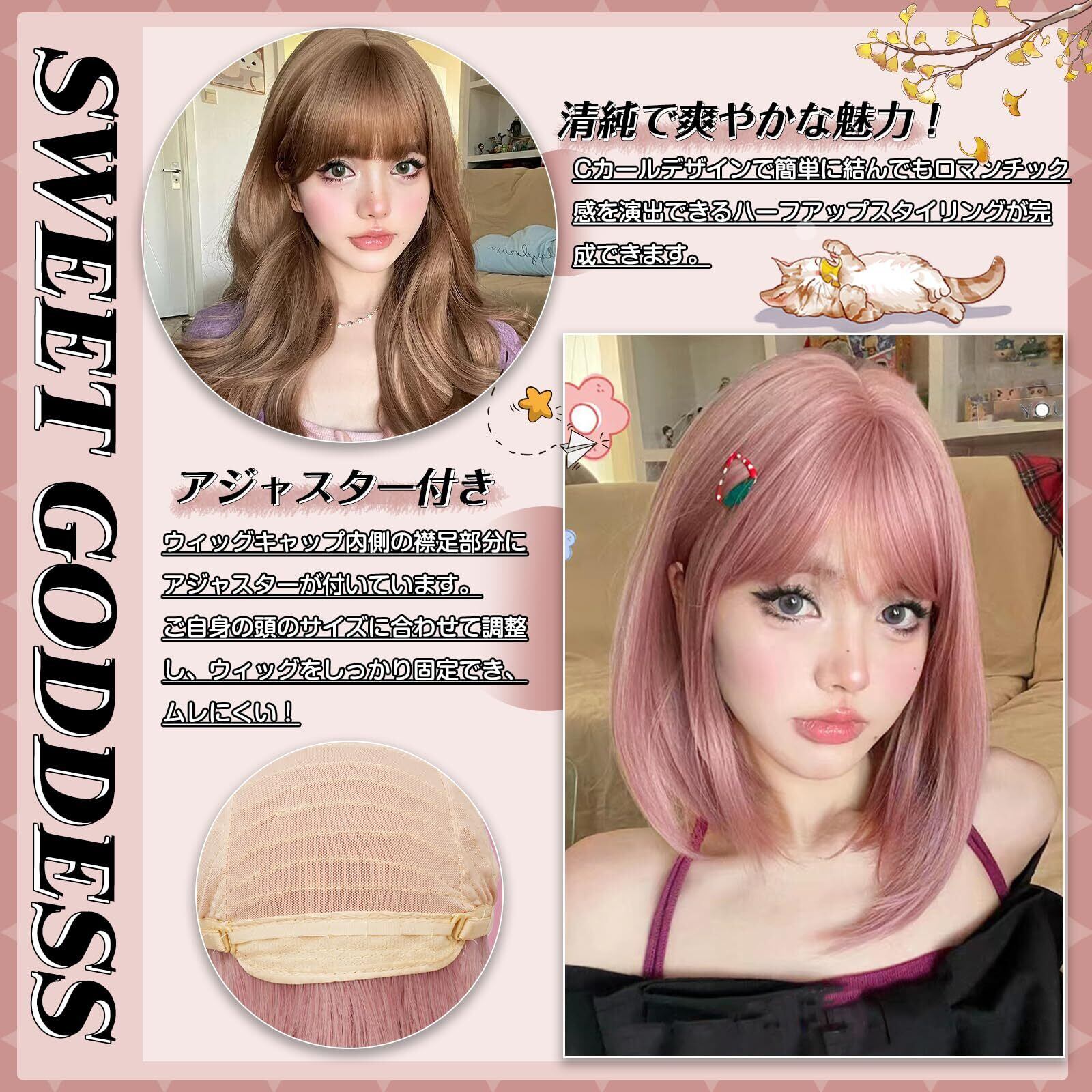 Hawkko ウィッグ セミロング ボブ ストレート ミディアム 黒髪 ショート ウィッグ ロング フルウィッグ レディーズ ぱっつん前髪 女性 かつら カツラ 女装ウィッグ 自然 ロングウイッグ コスプレ 原宿系 日常 wig 小顔 耐熱 ネット/櫛付き(アッシュピンク) | Bloomia