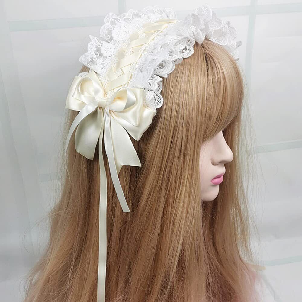 [通用] チャーム ロリータ 髪飾り リボン付き ヘアアクセサリー レースフリル カチューシャコスプレ系 萌え系 お人形 茶話会 パーティー メイドヘア lolita おしゃれ ゴスロリかわいい ヘッドドレス (Beige) | Bloomia