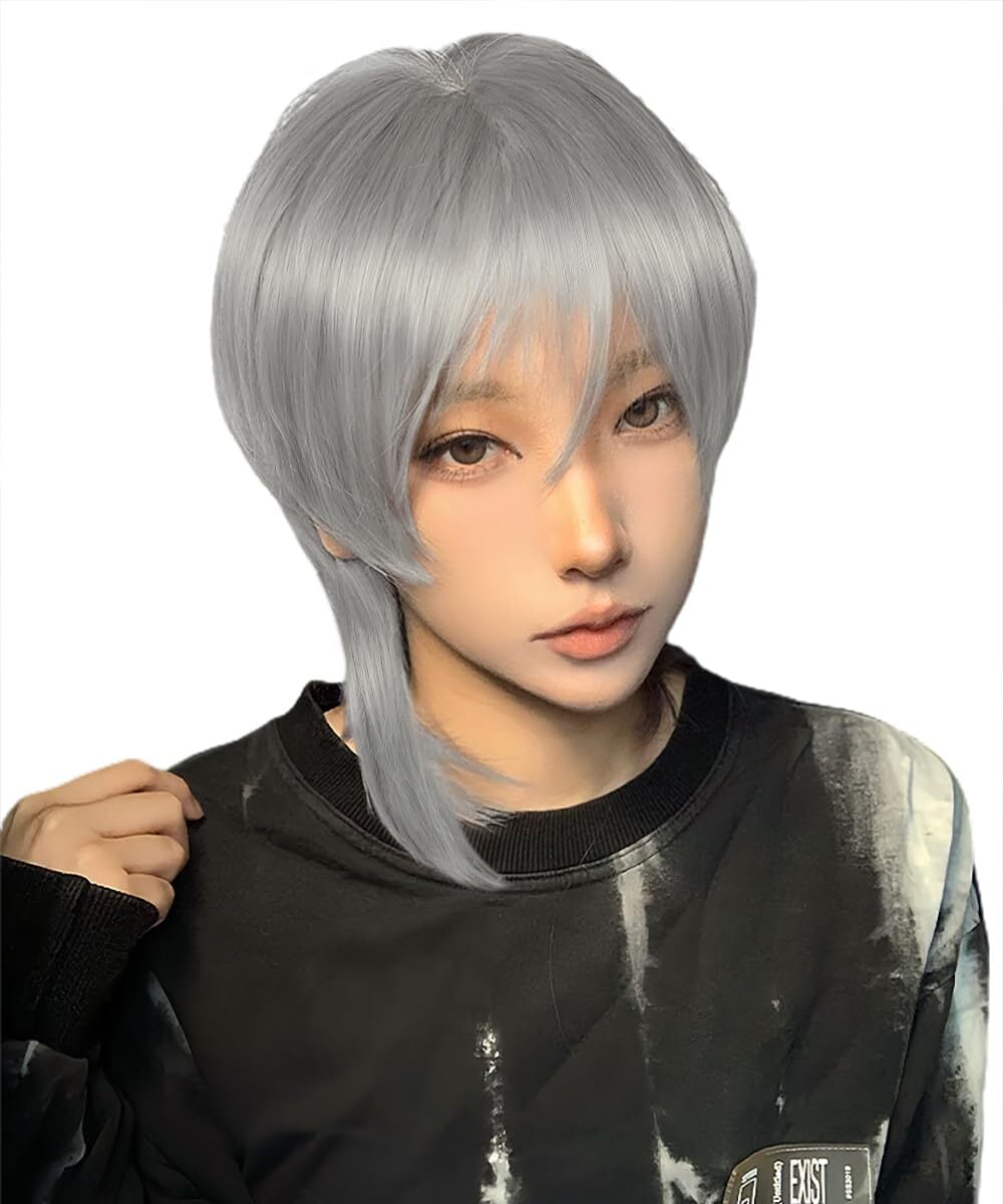 [FORCUTEU] ウィッグ メンズ ロング グレー ウルフ フルウィッグ コスプレ ファッション 耐熱 人気 ネット/櫛付き