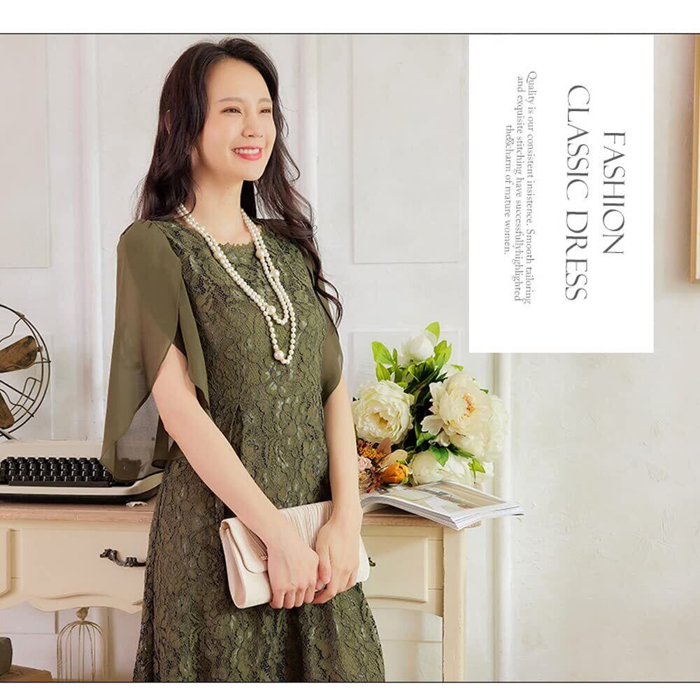 「素材感」軽やかなレース素材とふんわり爽やかなシフォンスカート、動く度にきれいに見えます。