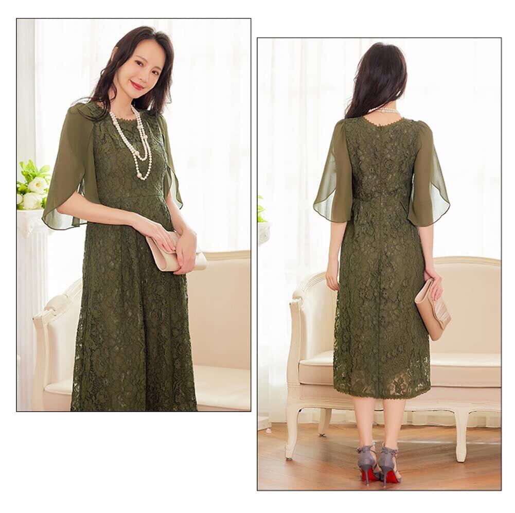 [エクス] 結婚式ドレス レース 袖あり ロング丈 体型カバー 結婚式 ワンピース マキシワンピース ハイウエスト 演奏会 二次会 発表会 パーティードレス フォーマルドレス 披露宴 二次会 結婚式 服装