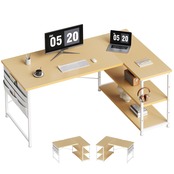 YeTom l字デスク ゲーミングデスク 机 デスク 右棚左棚 幅107cm つくえ 棚板高さ調節可能 収納袋付き L字型 PC 勉強机 作業 在宅ワーク ライトオーク