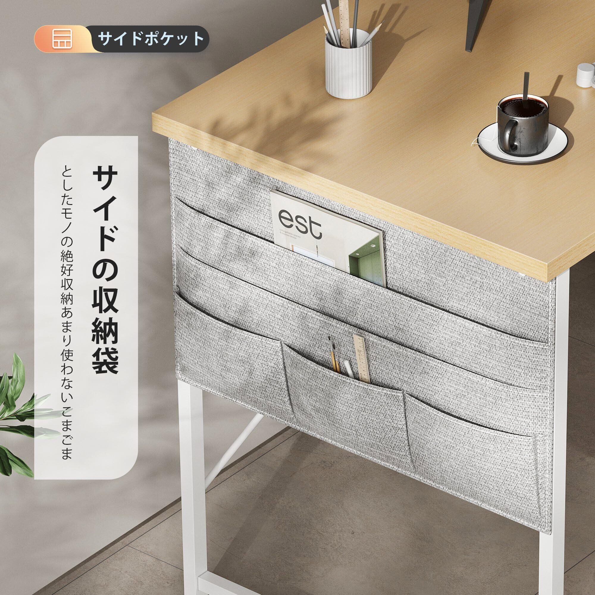 L字型のデザインは、コーナーを有効活用し、より快適な作業環境を実現します。余計な圧迫感を与えず、効率的にスペースを使えるため、在宅ワークでも快適な集中力を保てます。デスク周りをすっきりさせる収納袋も付属し、とても便利です。