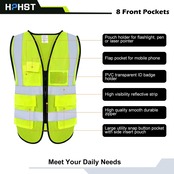 [HPHST] 警告チョッキ男女高視認性警備員チョッキファスナー付き反射チョッキ作業チョッキEN ISO 20471