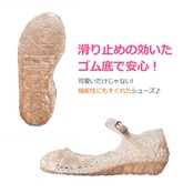 3.軽くて柔らかいラバー素材で長い時間履いて歩いても楽です。止め金具はお子さまでも簡単に留められるストラップタイプです。 キラキラ輝くラメタップリのグリッター素材がお姫様の特別なシューズみたい。