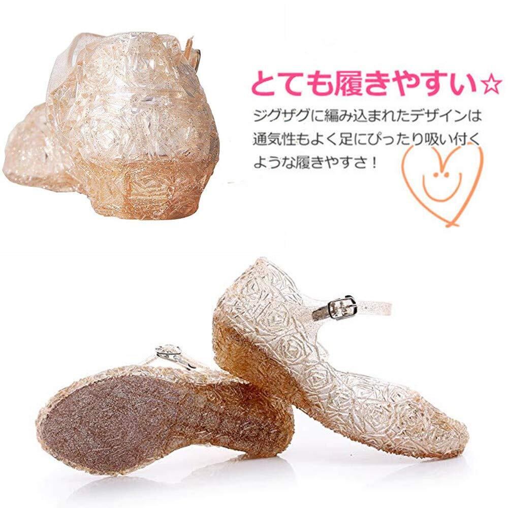[CQDY] ラバーサンダル 女の子用 プリンセス なりきり17cm-20cm キッズ サンダル ストラップ キラキラ お姫様 ドレスシューズ 滑り止め 子供靴 発表会 ピアノ 結婚式 ハロウィン コスプレ クリスマス パーティー最適