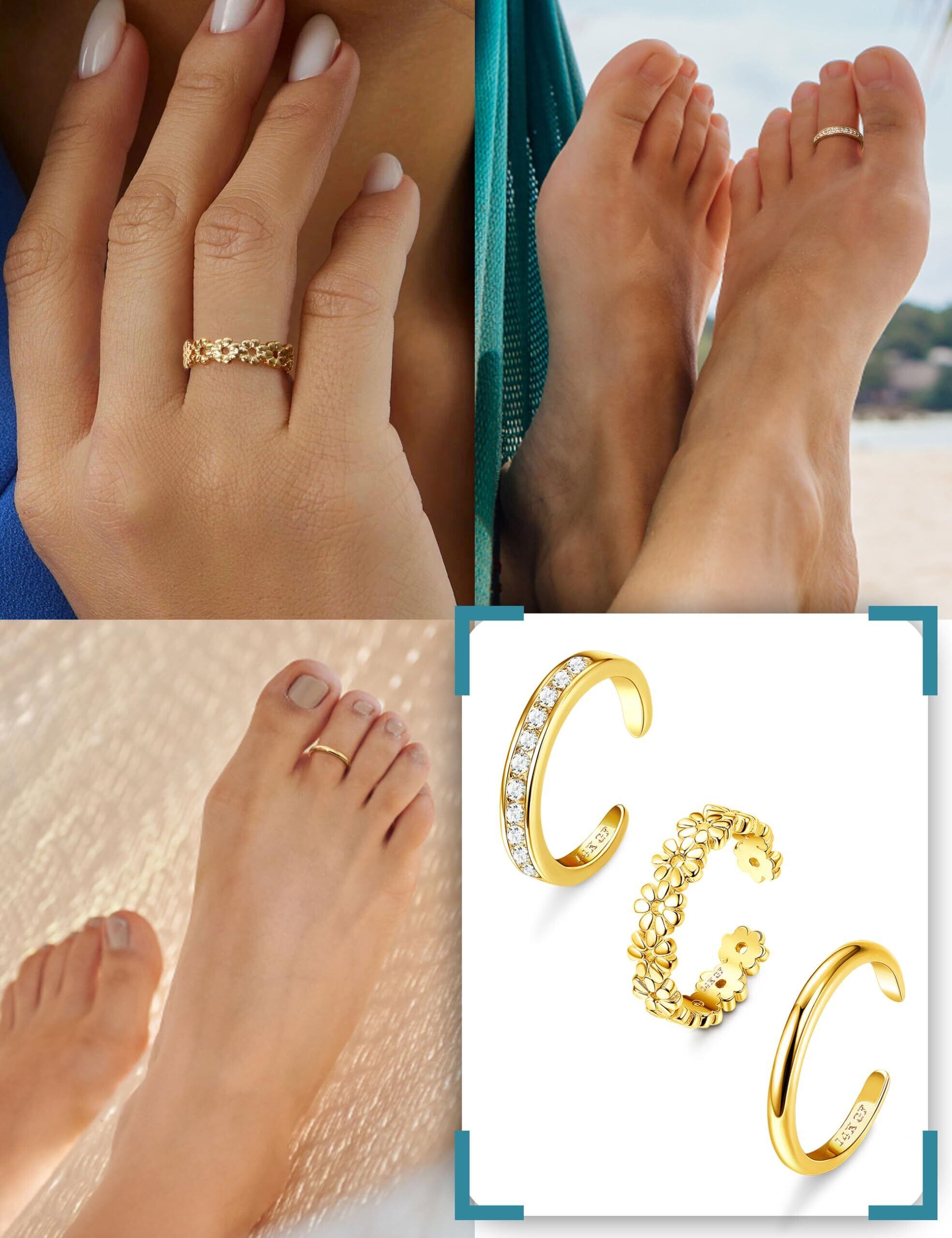 ゴールドトゥリング--パッケージには3個の調節可能なつま先リングが含まれます。バンドトゥリング、フラワートゥリング、キュービックジルコニアバンドトゥリングが含まれます。これらのつま先リングは背面にギャップがあり、調節可能で、すべての女性やあらゆる服装や機会に適しています。
