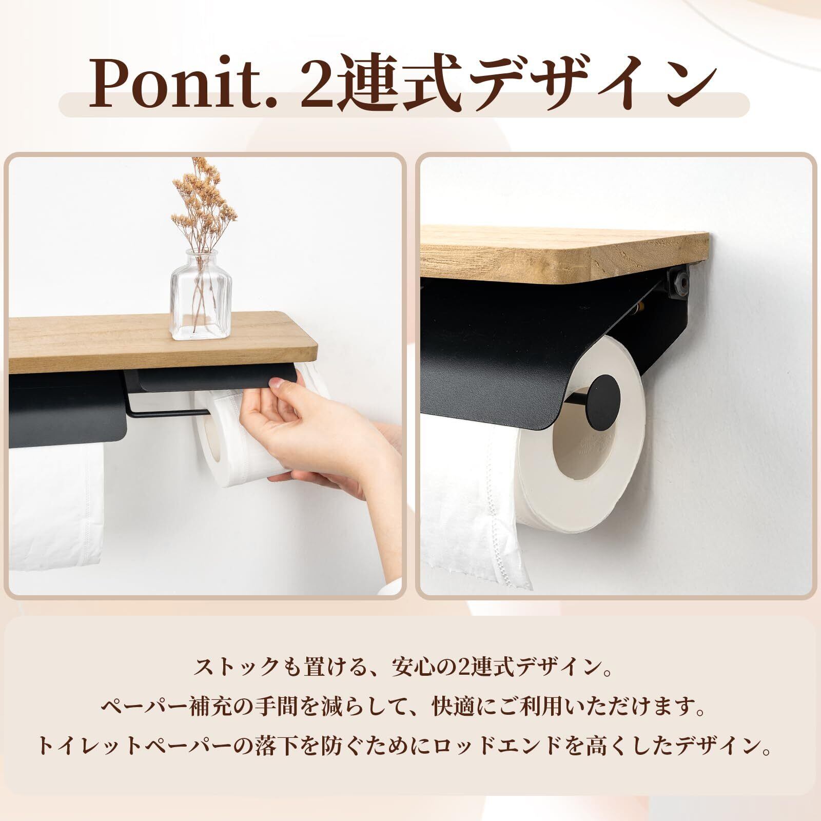 トイレットペーパーホルダー 木製 棚付き スマホ置き インテリア 賃貸 DIY おしゃれ 2連 簡単設置 補充楽 飾り棚 ペーパーホルダー 収納対応紙巻器(ナチュラル×ブラック ダブル) | Bloomia