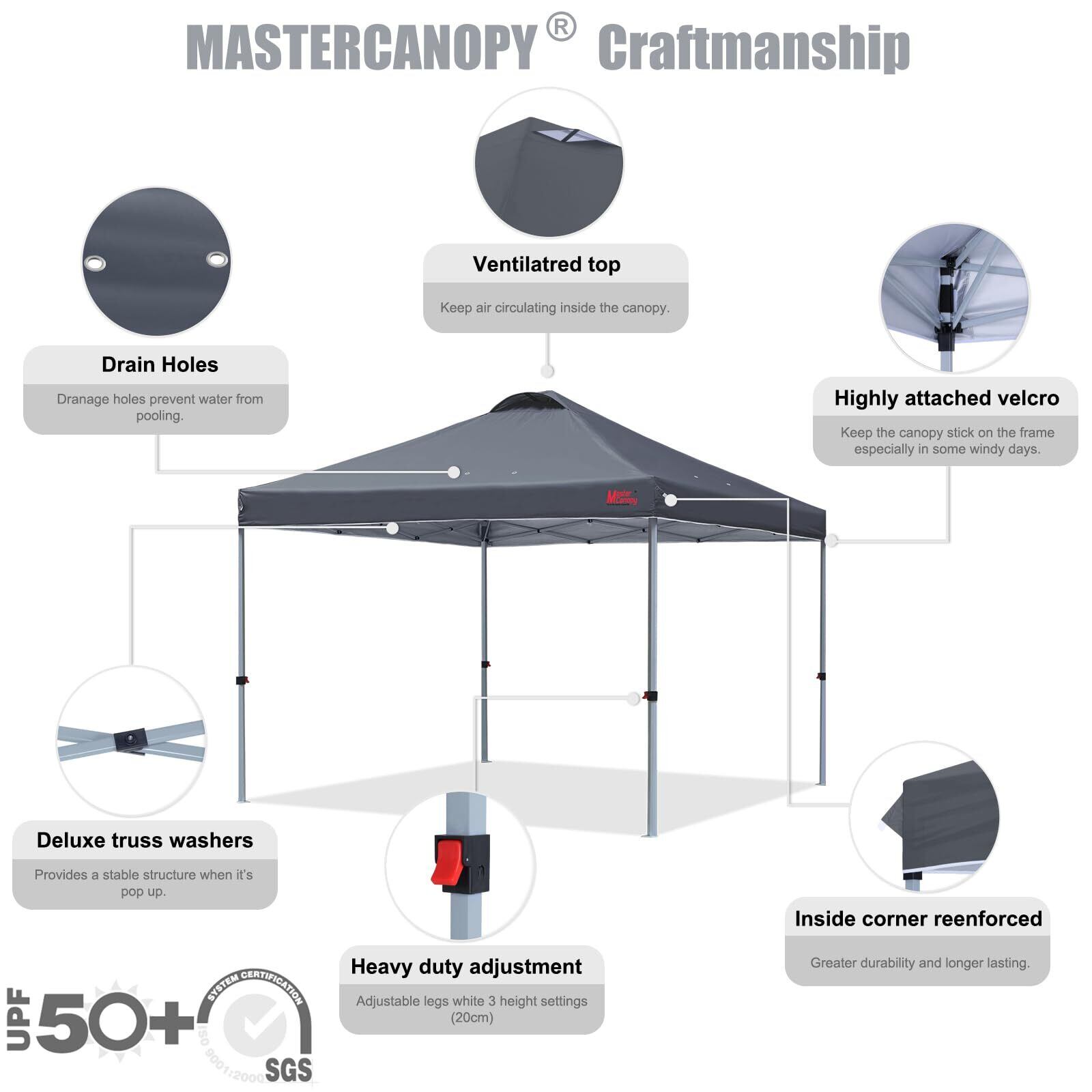[MASTERCANOPY] ワンタッチタープテント 2M/2.5M/3M 三段階調節 スチールフレーム 風抜けベンチレーション 耐水 UVカット サンシェード 日除け 商用 アウトドア用(キャスターバッグ ペグ ロープ ウェイトバッグ付き)(2.5M,深灰)