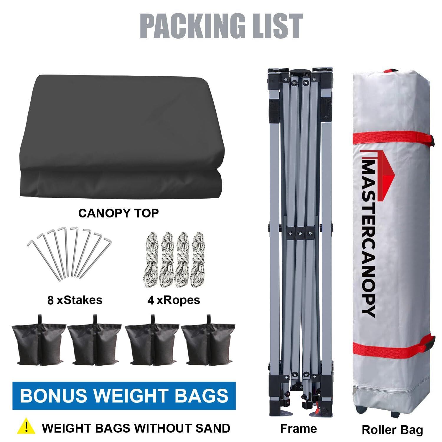マスターキャノピー(MASTERCANOPY)ワンタッチタープテント 2M/2.5M/3M 三段階調節 スチールフレーム 風抜けベンチレーション 耐水 UVカット サンシェード 日除け 商用 アウトドア用(キャスターバッグ ペグ ロープ ウェイトバッグ付き)(2.5M,深灰) | Bloomia