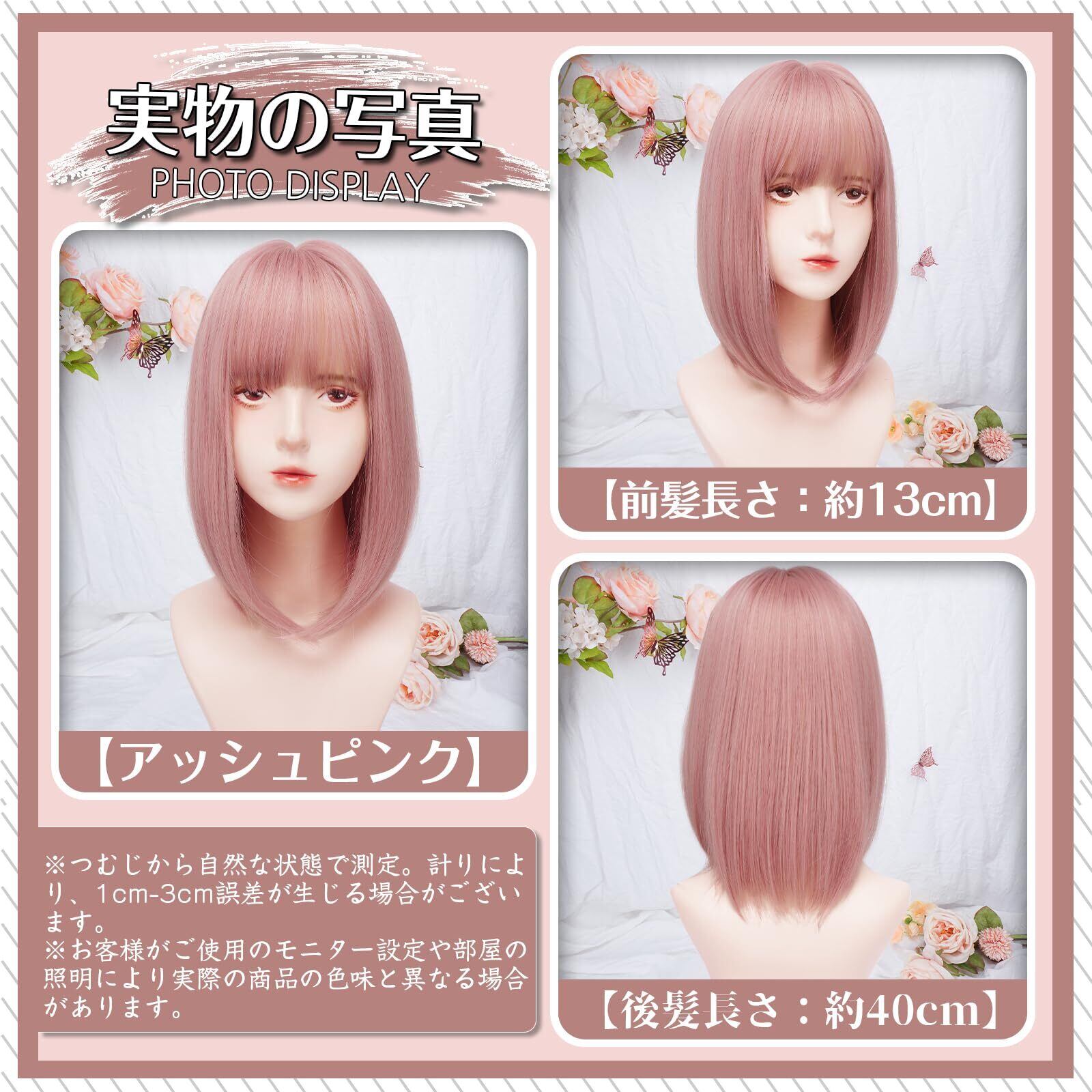 Hawkko ウィッグ セミロング ボブ ストレート ミディアム 黒髪 ショート ウィッグ ロング フルウィッグ レディーズ ぱっつん前髪 女性 かつら カツラ 女装ウィッグ 自然 ロングウイッグ コスプレ 原宿系 日常 wig 小顔 耐熱 ネット/櫛付き(アッシュピンク) | Bloomia