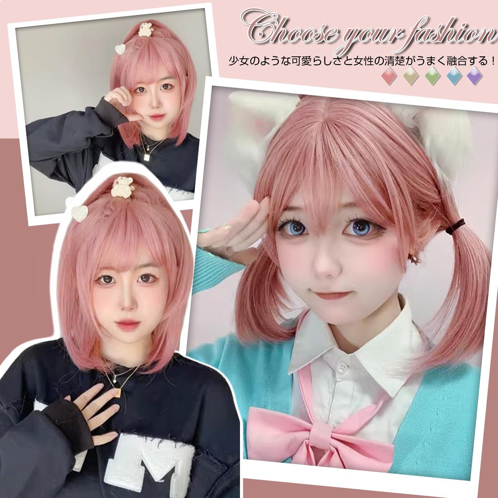 [Hawkko]のセミロングボブウィッグは、流行の黒髪スタイルからアッシュピンクのデザインまで、様々なシーンやスタイルに合わせやすいアイテムです。ぱっつん前髪が印象的で、どんな顔型にも合いやすく、小顔効果も期待できます。カジュアルからコスプレまで幅広く対応し、特別な時や普段使いにも最適です。