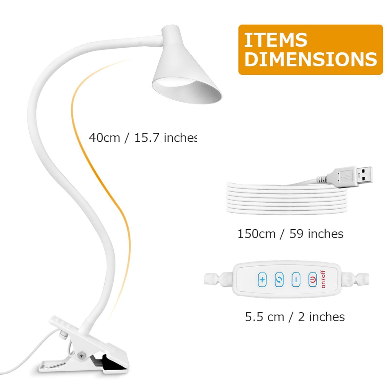 Semlos クリップライト 14 LED 3段調色 暖色 昼光色 白色 10段調光 400ルーメン 50000時間 長寿命 自動消灯 省エネ 目に優しい USB給電対応 デスクライト 読書ランプ PC作業・仕事・寝室・卓上・ベッドサイド 白色