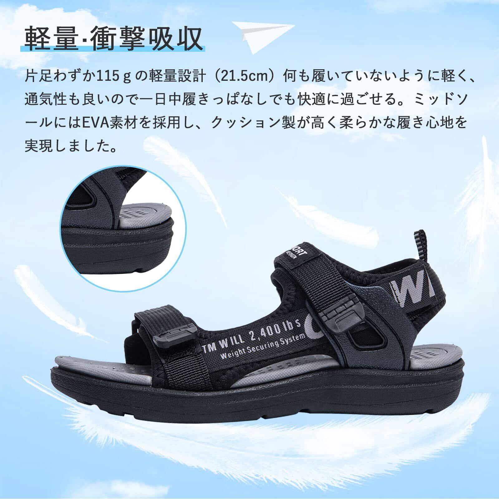 【通気性・吸汗性が抜群】このスポーツサンダルはオープントゥのデザインで、通気性良く、夏場や長時間の運動でも不快な蒸れを軽減します。十分に柔軟で、曲がりやすいですから、気性と吸汗性を重視した、透かし彫りのアッパーは排水でき、靴の中にいつも快適です。