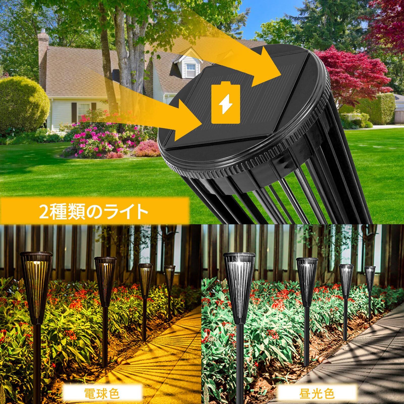 [2024新登場] ソーラーライト ガーデンライト 屋外 2個セット IP65防水 電球色/昼光色自由転换 自動点灯/消灯 しなやかで強い素材 埋め込み LED 芝生/車道/玄関/歩道/庭/花壇/テラスに適用