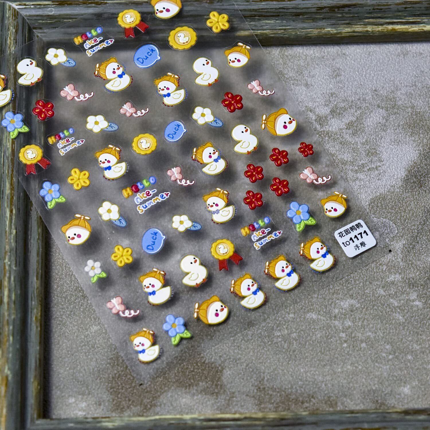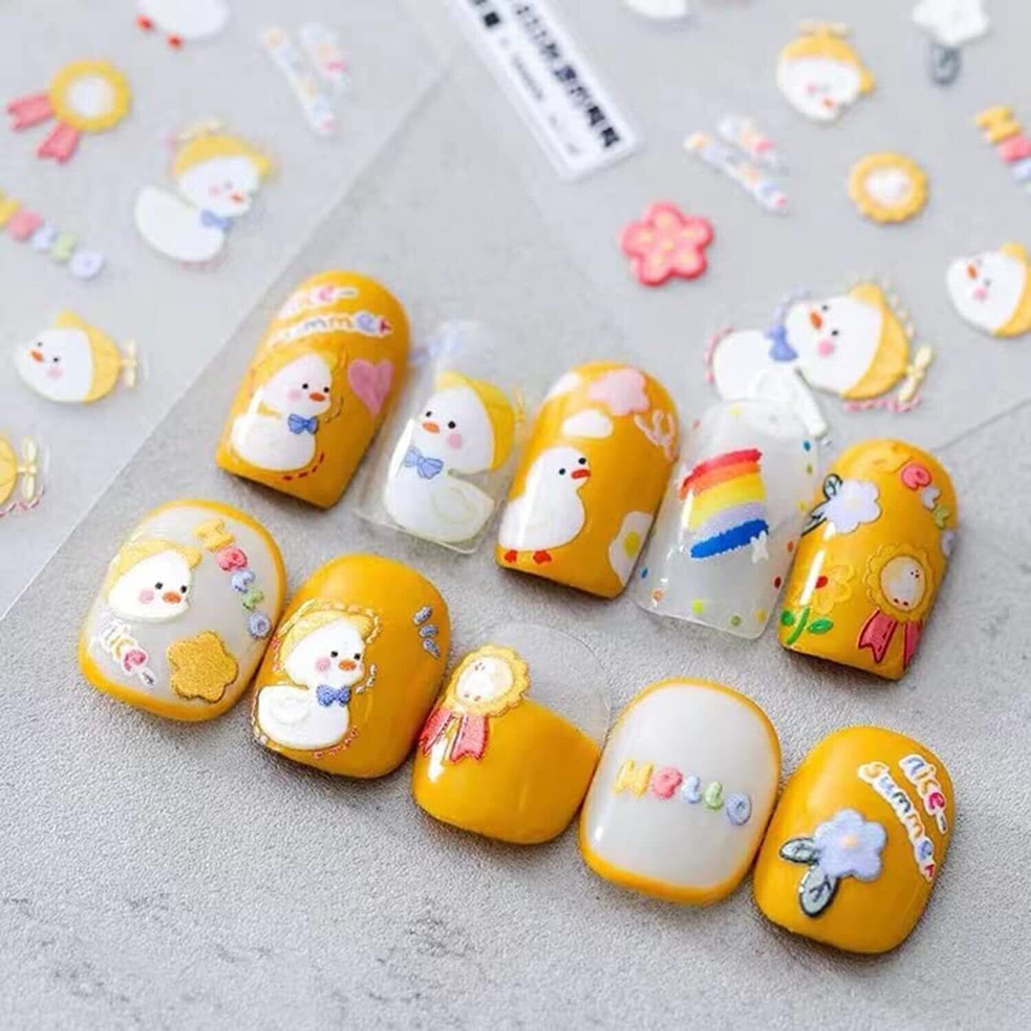グラフィティイエローダックネイルアートステッカーデカールガーデン5Dエンボスかわいい自己接着性手描きグラフィティカラフルフラワーネイルアートステッカー女の子のためのDIYデザインデコレーション女性キッズマニキュアギフトネイルチャーム(2枚) | Bloomia