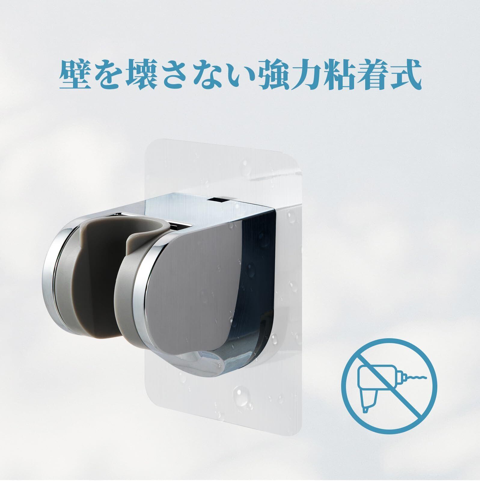 [OFFO] 粘着式シャワーフック シャワー角度45°調整可能 シャワーホルダー 簡単取付 クロムメッキ 取付説明書付き