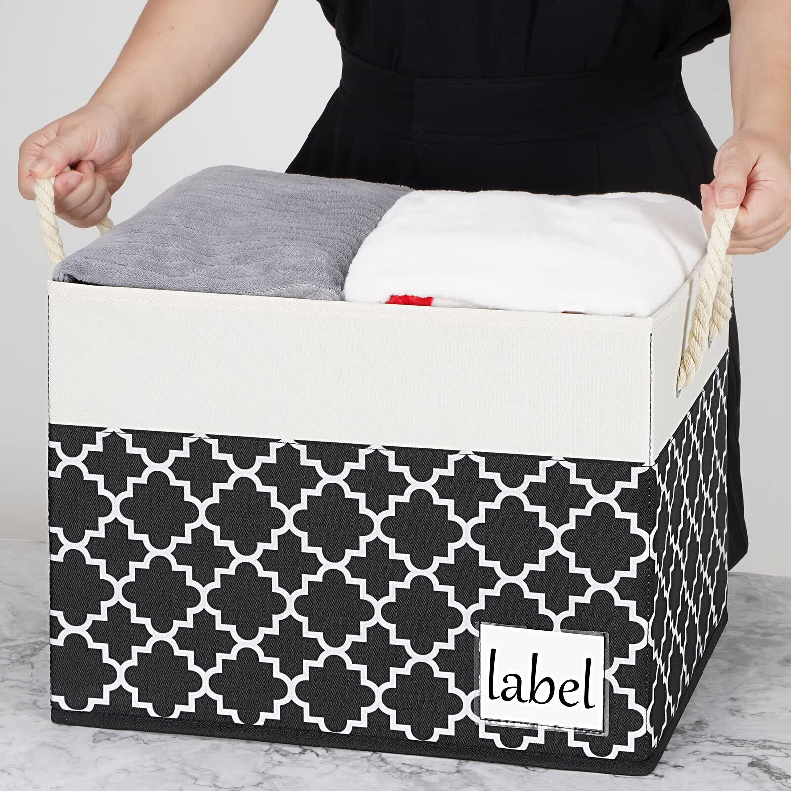 【頑丈な構造】収納バスケットはカチオン性素材の生地で作られており、臭いがなく、丈夫で、底部と側壁には段ボールが挿入されており、これらの収納ボックスを支え、立った状態に保ち、構造的完全性を保ち、収納ボックスの崩壊や変形を防ぐことができます。 。この頑丈な収納バスケットは、長期保管のニーズを満たします。