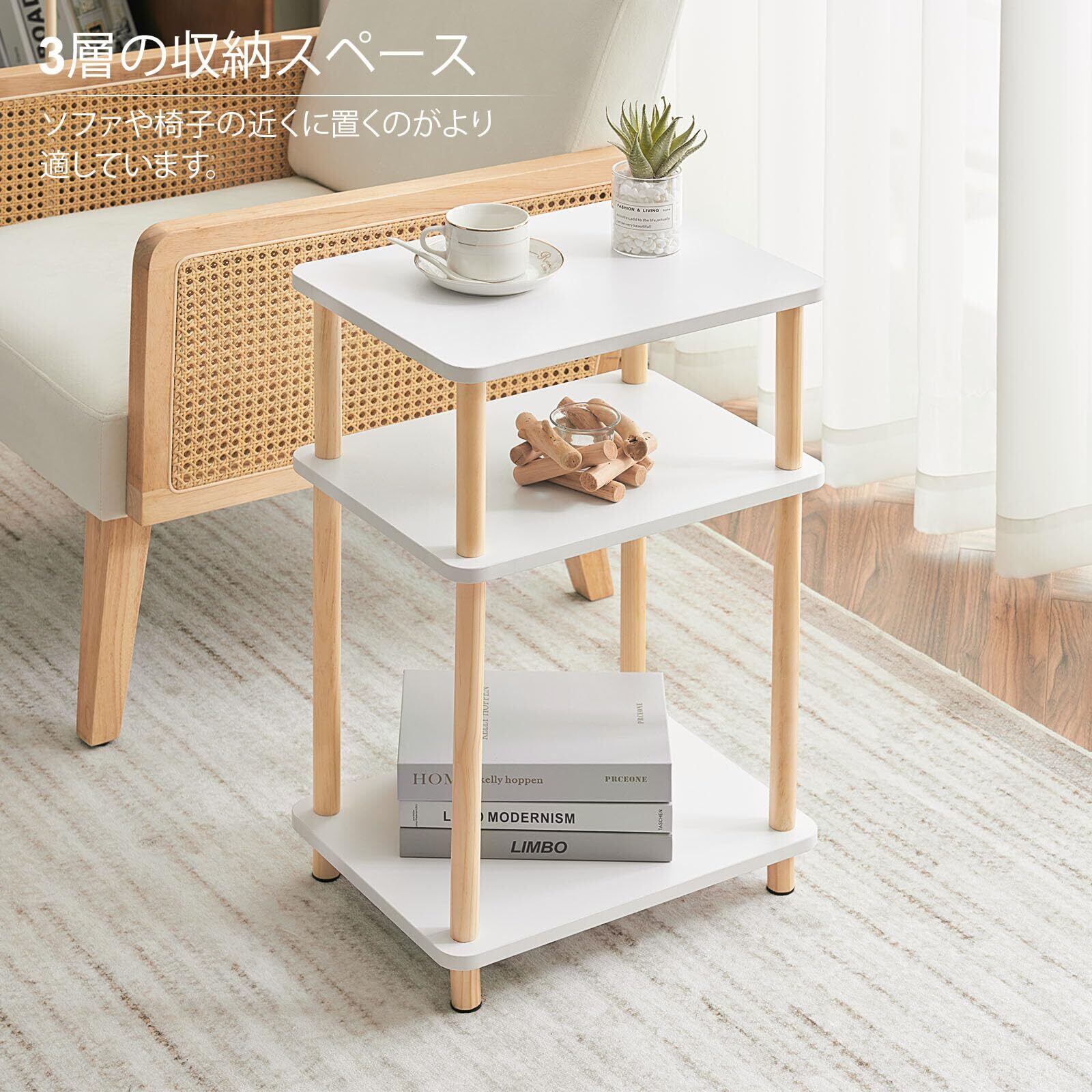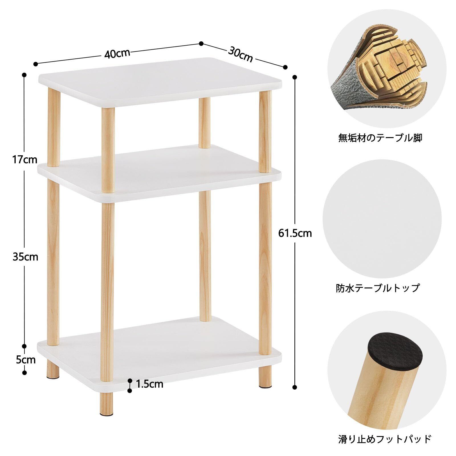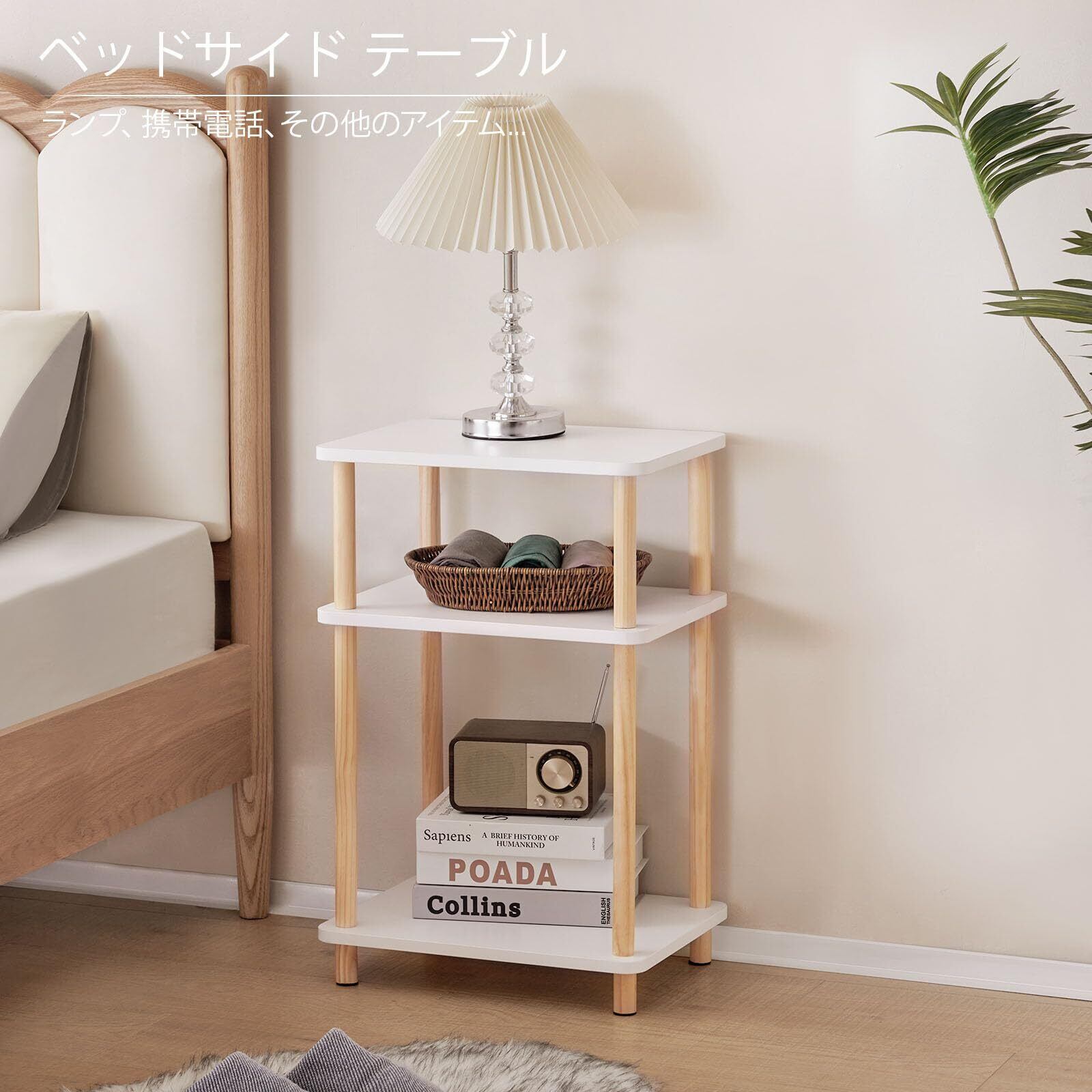 サイドテーブル ナイトテーブル 天然木 小さい おしゃれ 収納棚付き ベット用 リビング ソファサイド 一人暮らし カフェテーブル (40cm*30cm*62cm, ナチュラル+ホワイト) | Bloomia