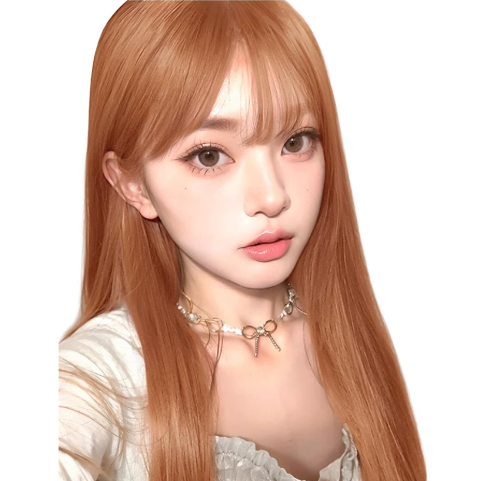 [BARSDAR ウィッグ ロング 黒髪 ストレート フルウィッグ] 女性 女装 かつら 自然 耐熱 小顔 原宿系 ロリータ コスプレ ファッション 日常 オレンジピンク