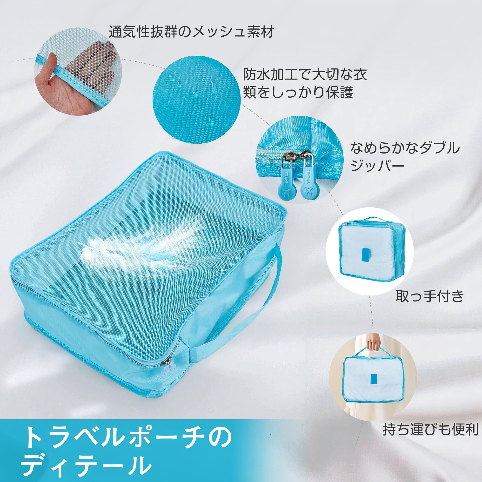 VECELO トラベルポーチ 6点セット 海外旅行 便利グッズ 財布travel bag トラベルグッズ 旅行用 衣類 整理 小物入れ 洗面用具 出張 たびとら 収納 旅行 ポーチ トラベルバッグ トラベルポーチ メンズ パッキングポーチ 靴用 下着収納 吊り下げ ブルー | Bloomia