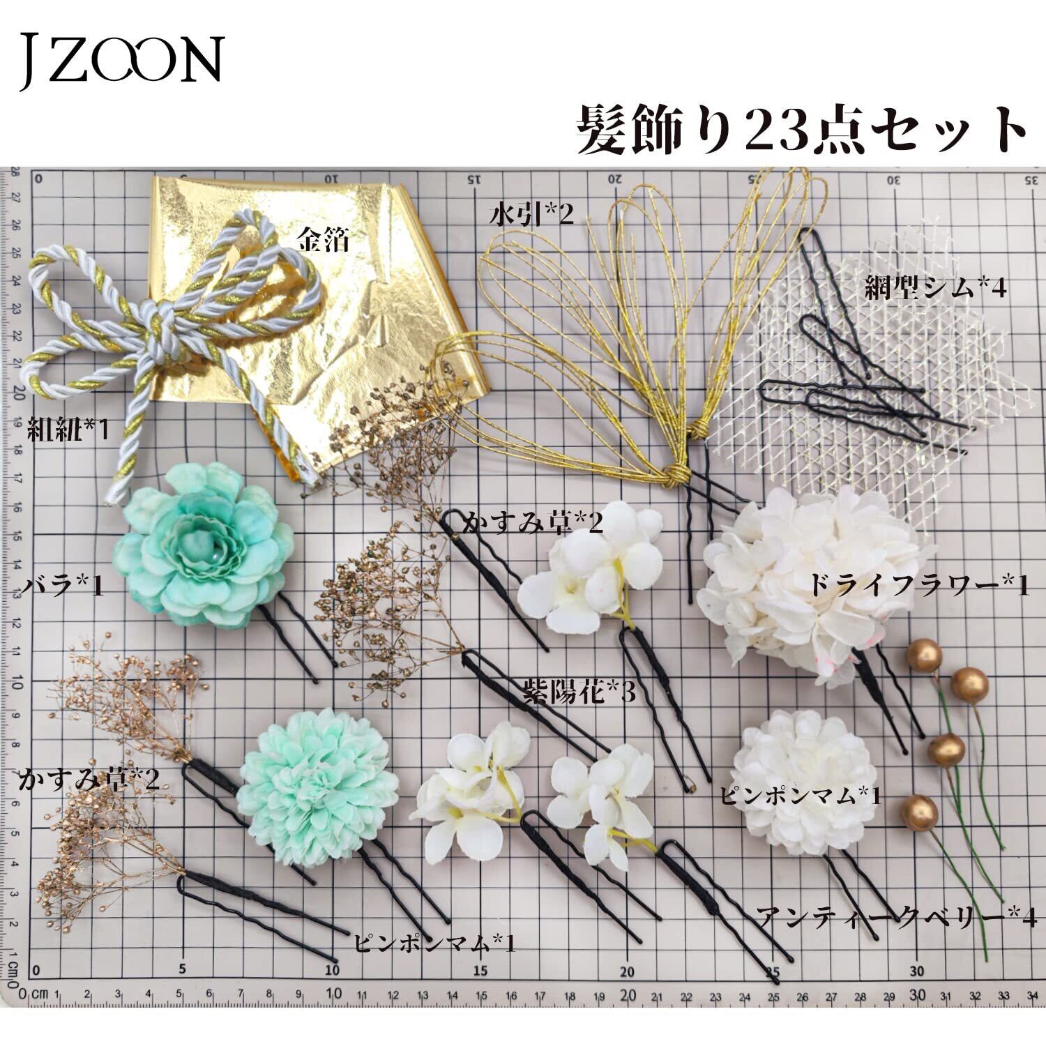 [JZOON] 髪飾り 成人式 髪飾り 金箔 卒業式 和装 結婚式 袴 着物 浴衣 振袖 ドライフラワー プリザーブドフラワー 高級造花