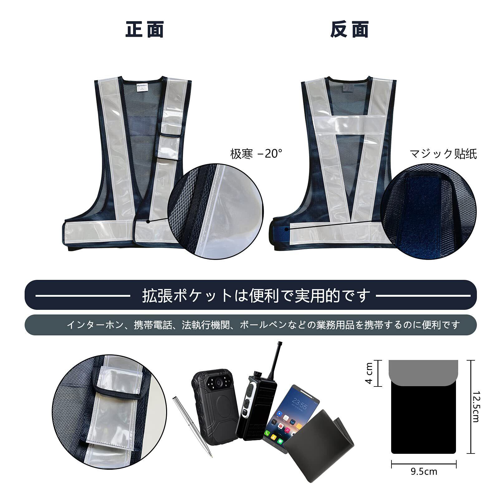 ポケットのデザイン:反射ベストポケットサイズ12.5 * 9.5 +バッグカバー4cm、工具や電話を置くために使用されます。ポケットにはベルクロが縫い付けられており、腰をかがめたときにアイテムが落ちるのを防ぎます。