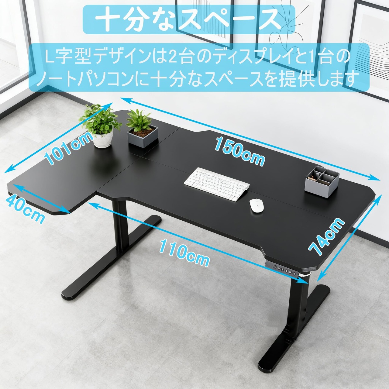 Radlove 昇降デスク パソコンデスク 電動昇降式デスクモーター2基 天板幅150CM×101CM ゲーミングデスク 机 デュアルモータースタンディングデスク PCデスク つくえ 高さ調節可能 メモリー機能付き 障害検知 高さ 71~117CM (ブラック, 150*101cm) | Bloomia