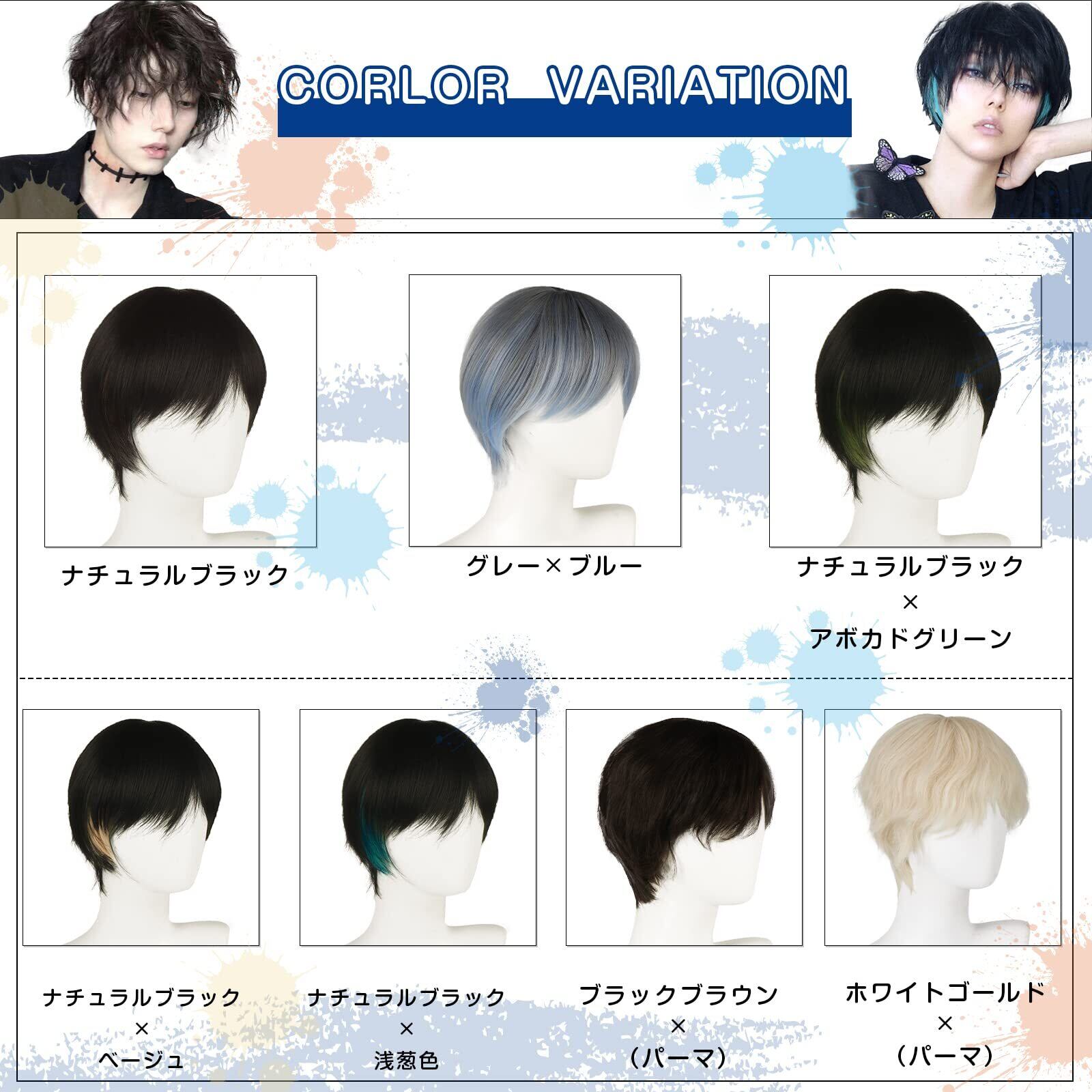 BARSDAR ウィッグ メンズ 男装 かつら ショート インナーカラー フルウィッグ 黒 男性 原宿 イケメン ハンサム 自然 小顔 耐熱 人気 ファッション イメチェン 男女兼用 グラデーション 短髪 ネット/櫛付き グレー×ブルー | Bloomia